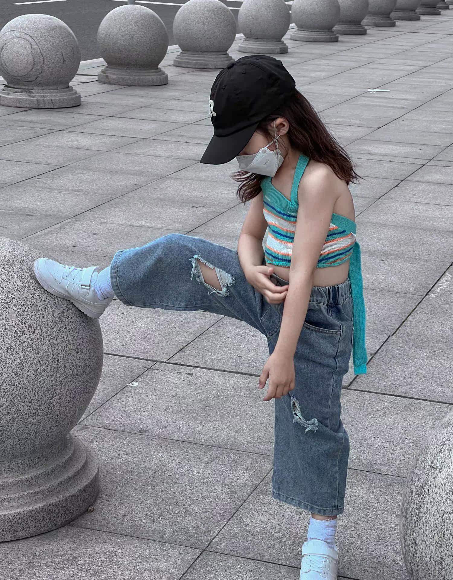Джинсы, летние детские штаны, тонкая летняя одежда, в корейском стиле, в западном стиле