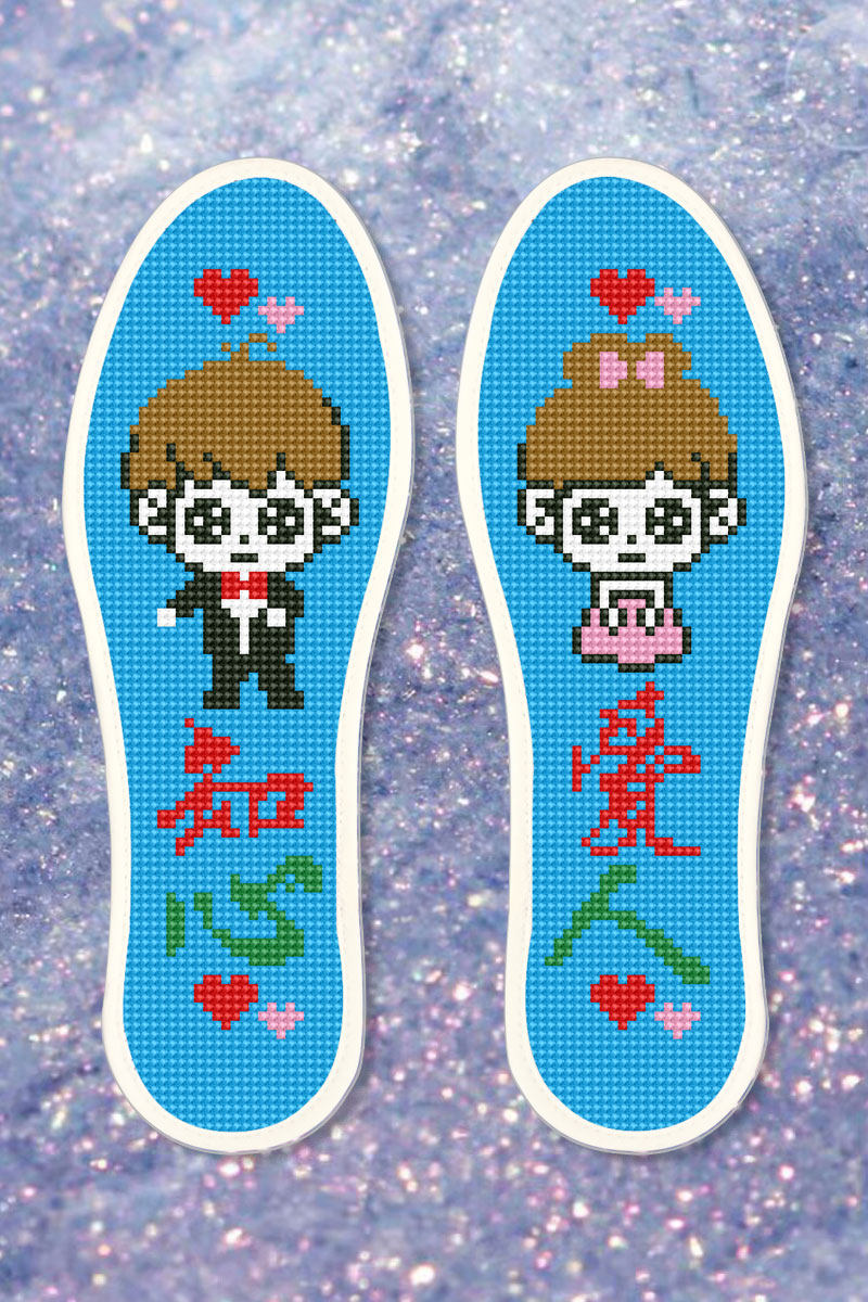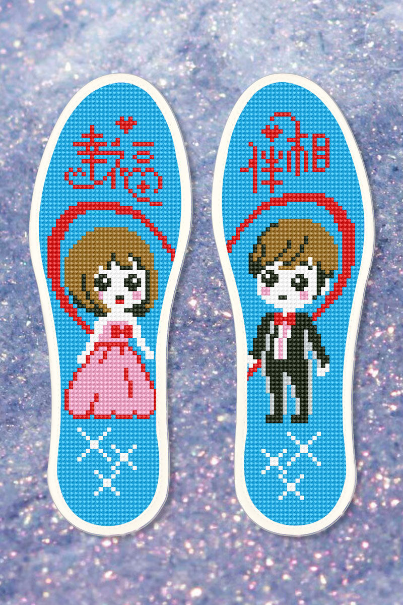 Вышитые ручной вышитой стельки с перекрестными средствами мужчина и женщины с полузащитыми продуктами с иглой.