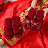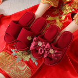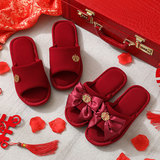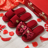 Праздничнные красные нескользящие летние тапочки для невесты, для влюбленных