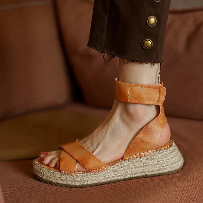 XIEYOUDU Летние комфортные соломенные сандалии на платформе, обувь, из натуральной кожи
