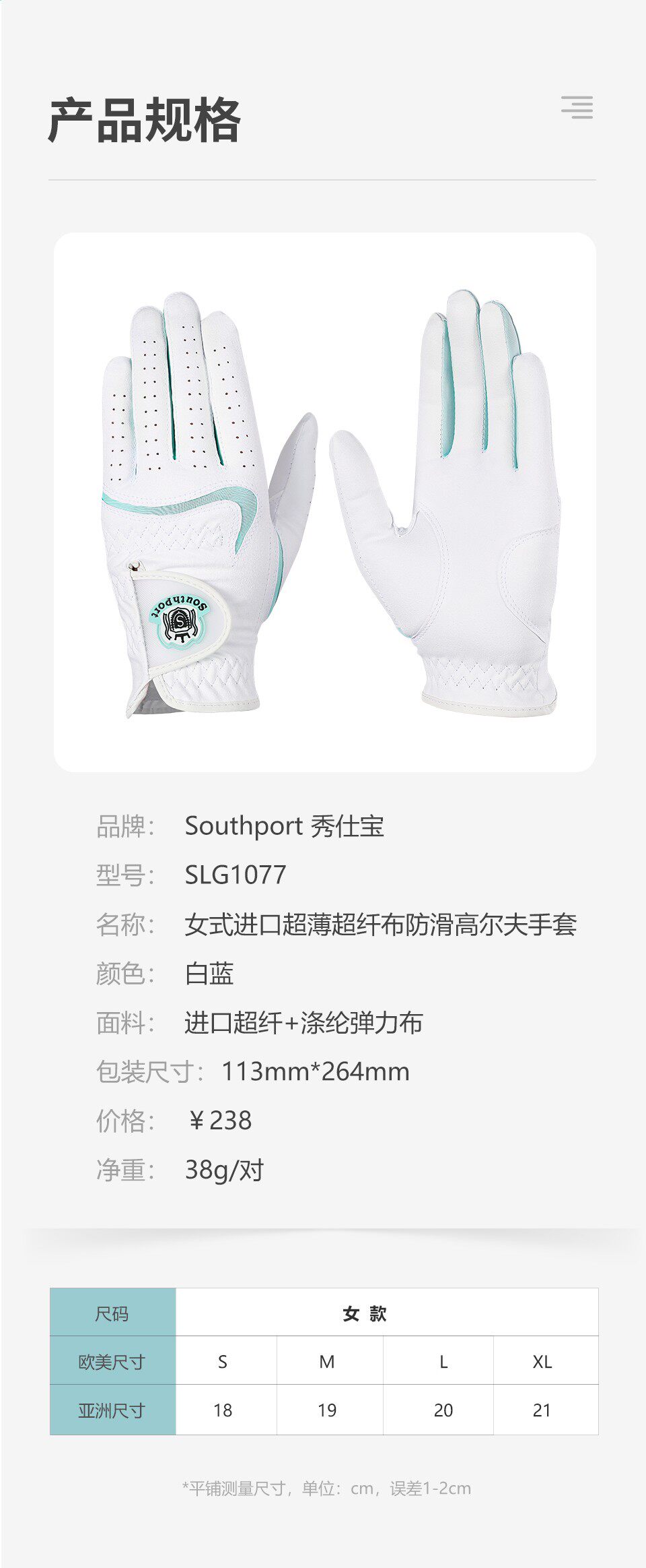 Новые перчатки для гольфа Southport Xiushibao для женских ультратонких ультра-волокон