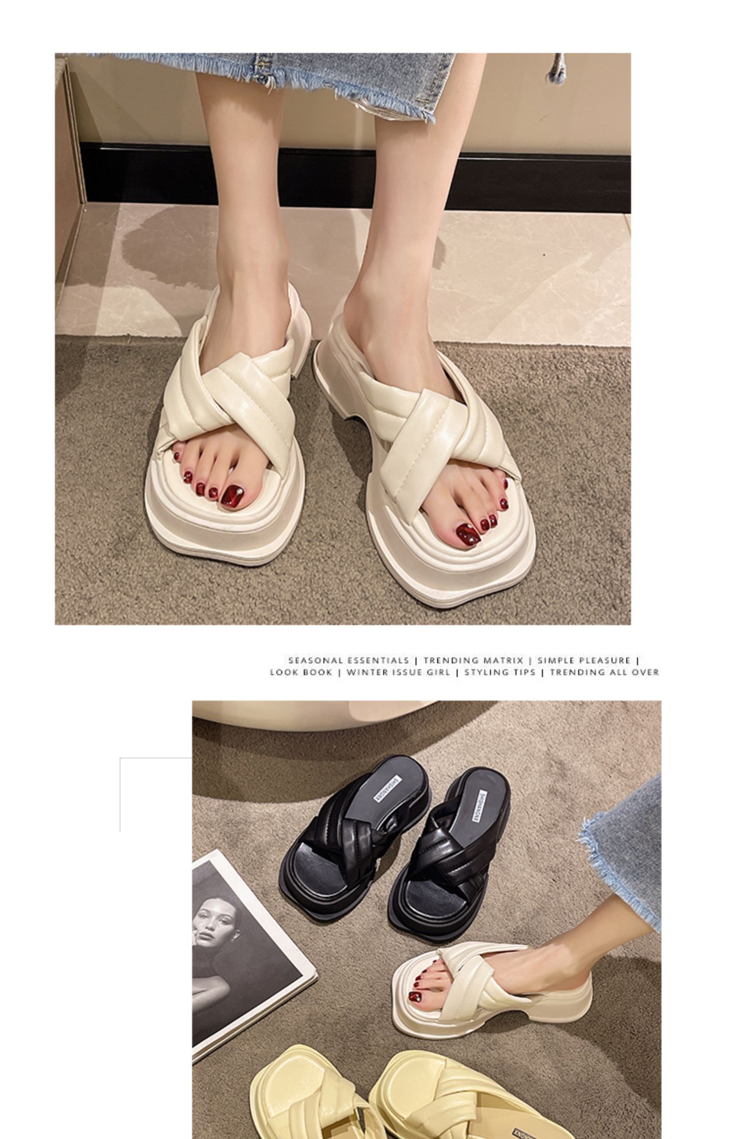 Тапочки, модная обувь, слайдеры на платформе, изысканный стиль