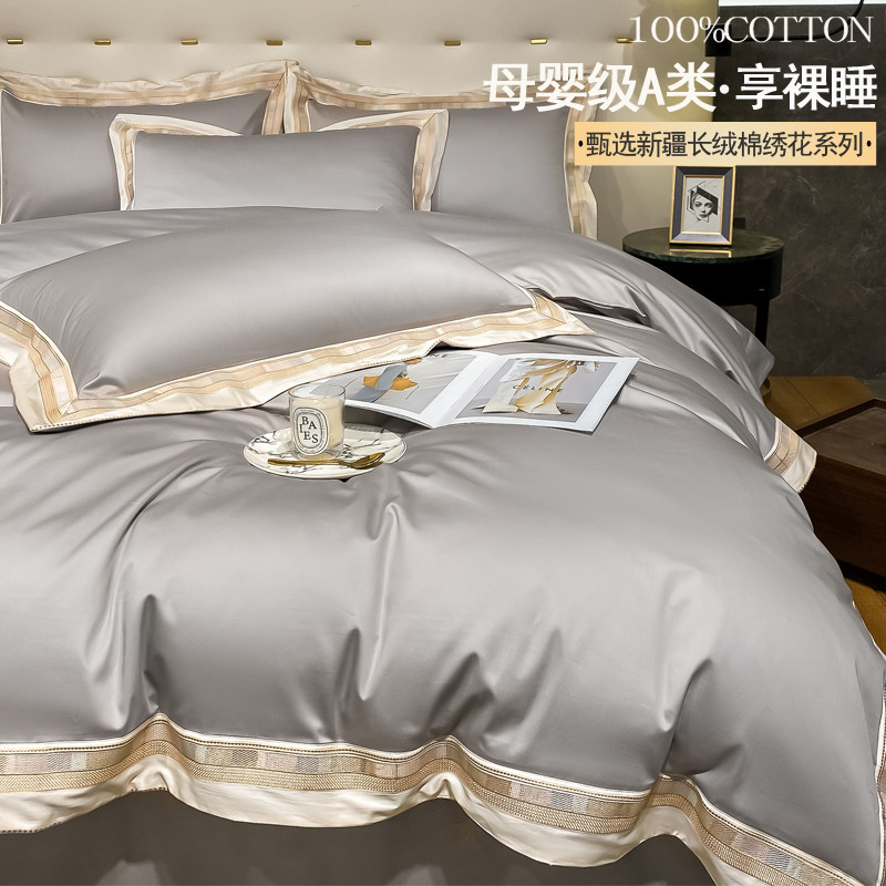 Высококлассный хлопковый комплект, хлопковая простыня, пододеяльник, покрывало, 200 шт, 4 предмета, легкий роскошный стиль, изысканный стиль