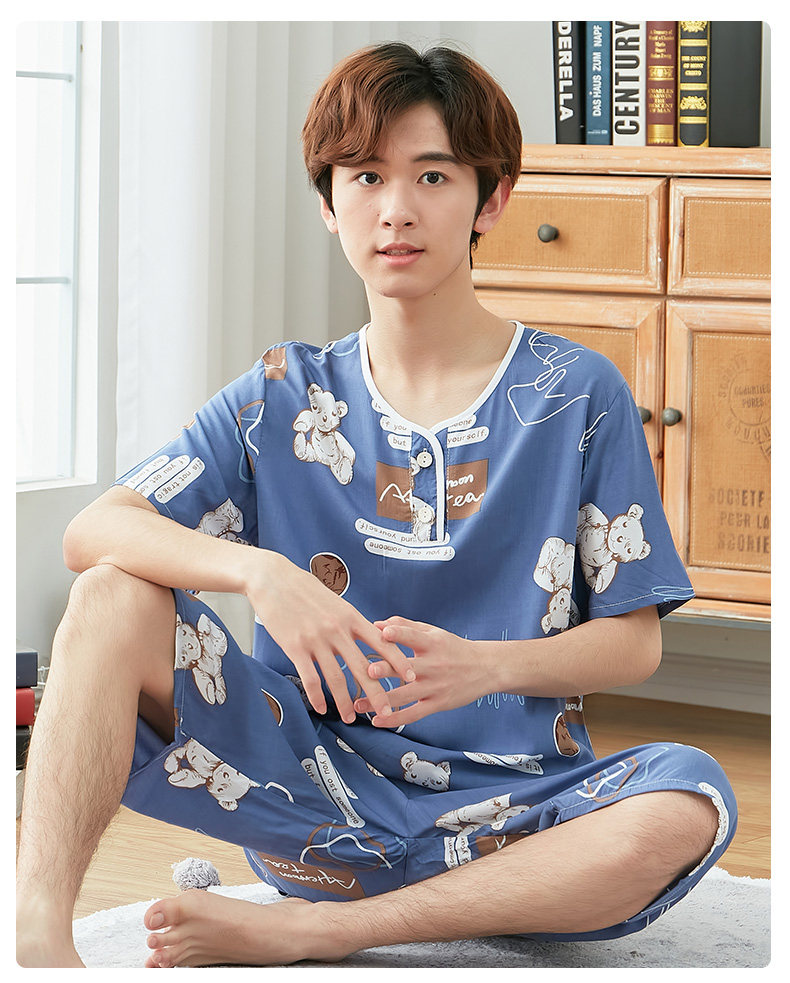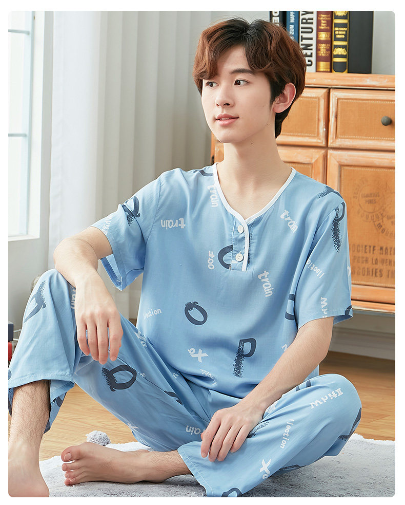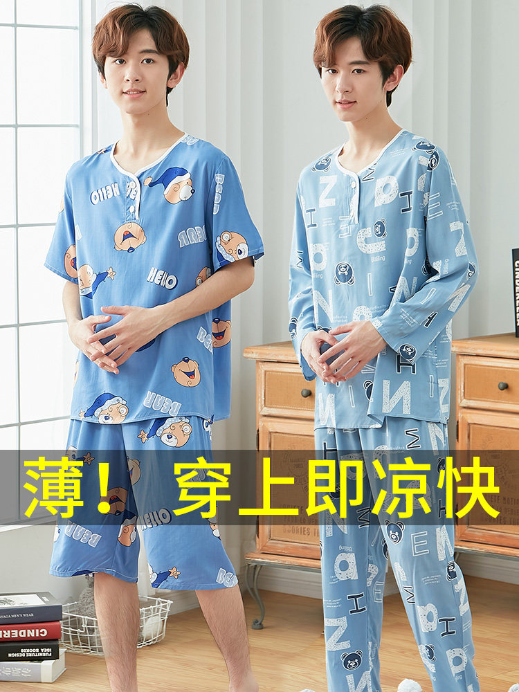 Летняя тонкая пижама для мальчиков, мужской детский комплект, подходит для подростков, мужской стиль