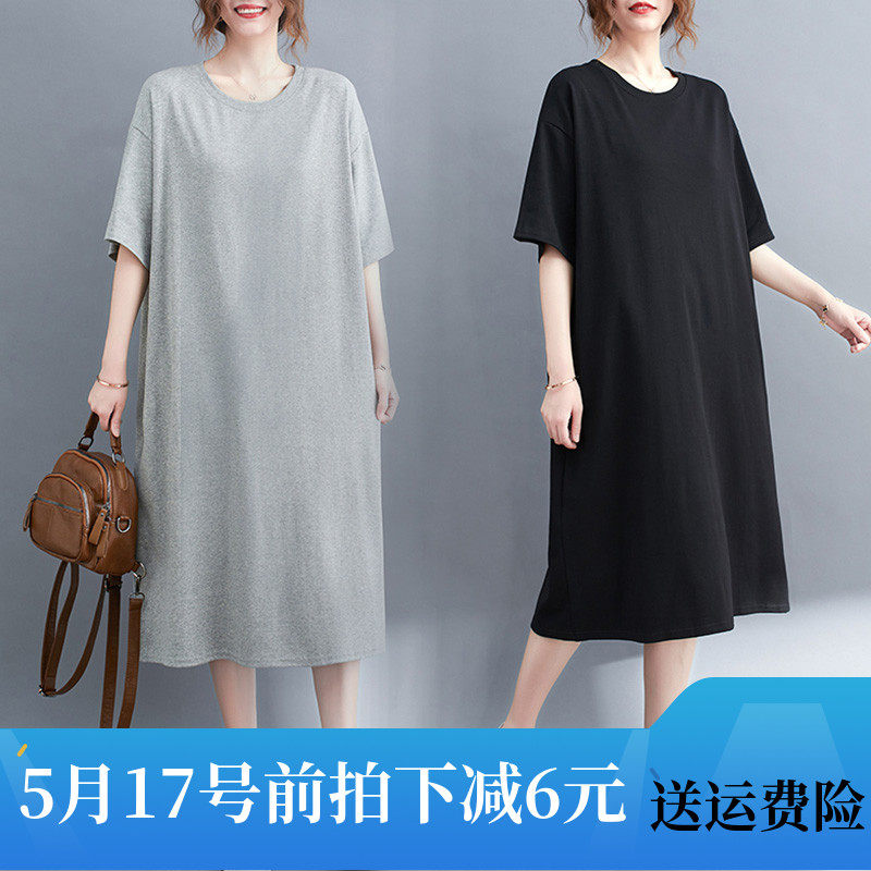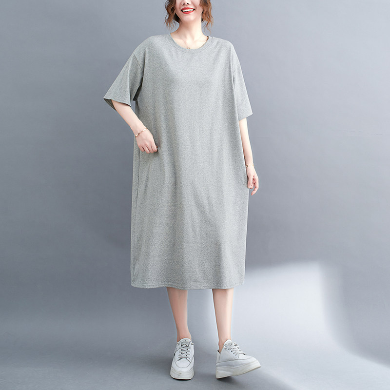 Модное летнее платье с коротким рукавом для отдыха, цветная длинная юбка с круглым воротником, свободный крой, большой размер, средней длины
