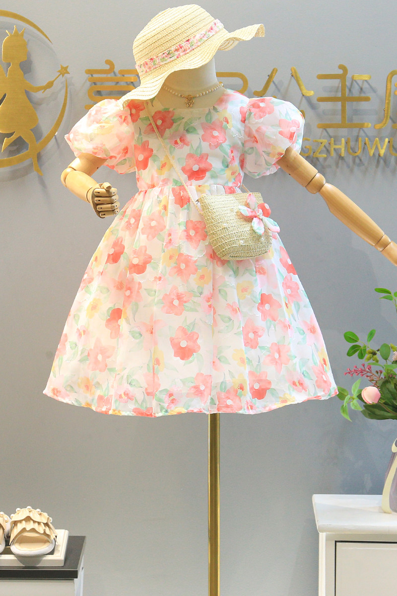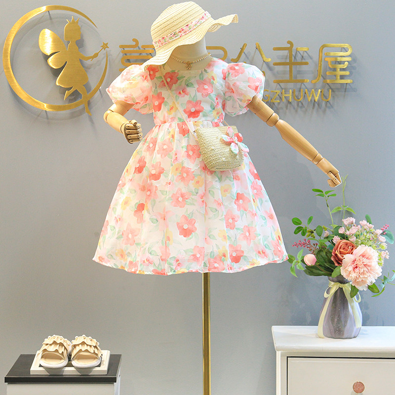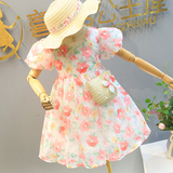 Летнее платье, юбка, шифоновый наряд маленькой принцессы, подходит для подростков, в цветочек, в западном стиле