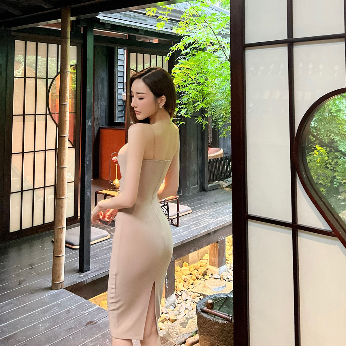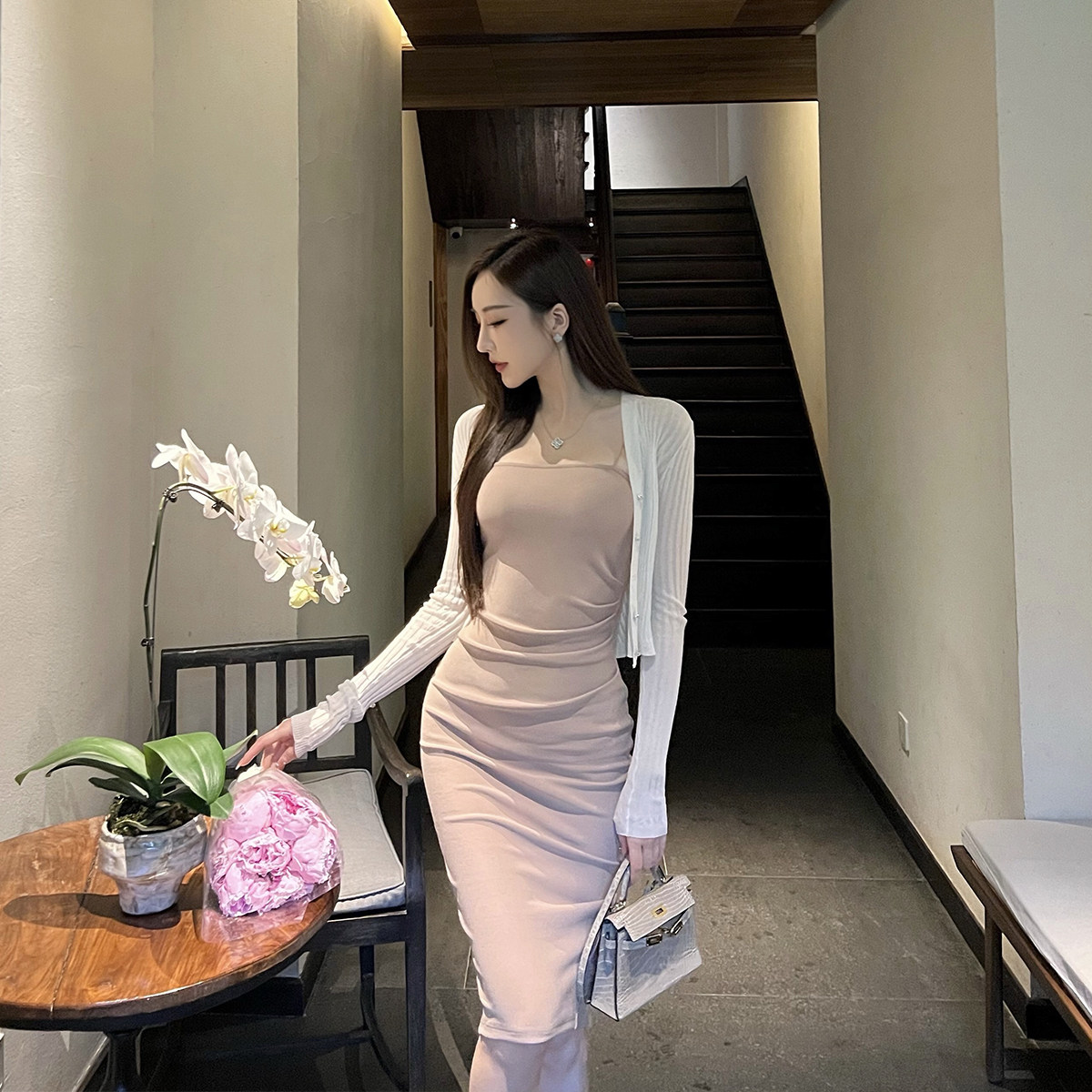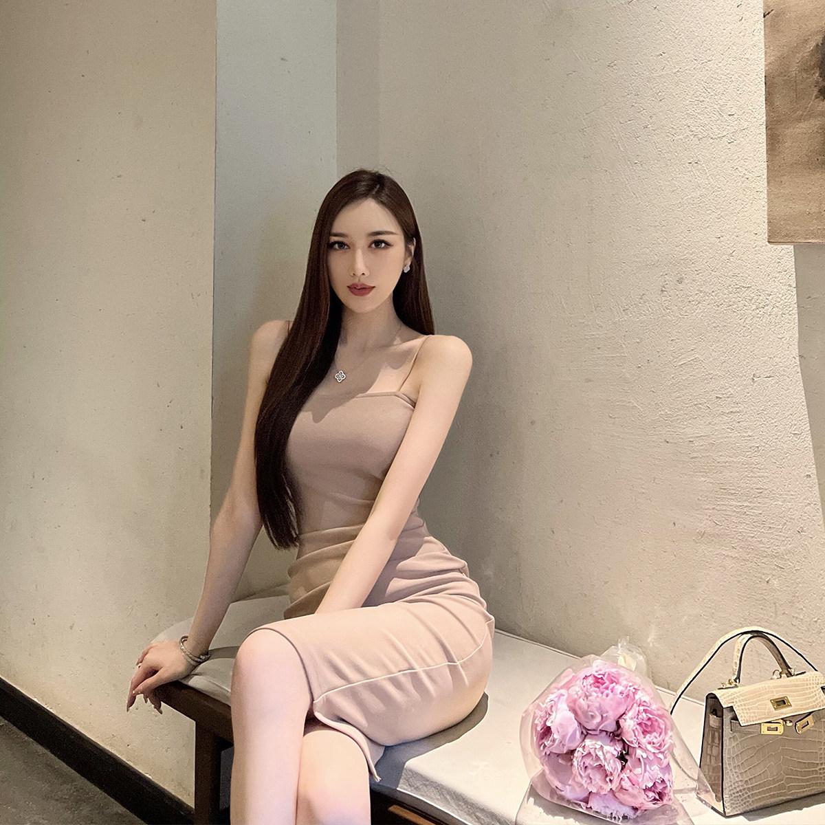 Топ без лямок, сексуальное платье, длинная юбка, эффект подтяжки, в обтяжку, с акцентом на бедрах, средней длины, длина макси