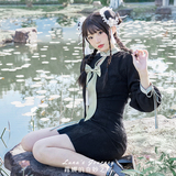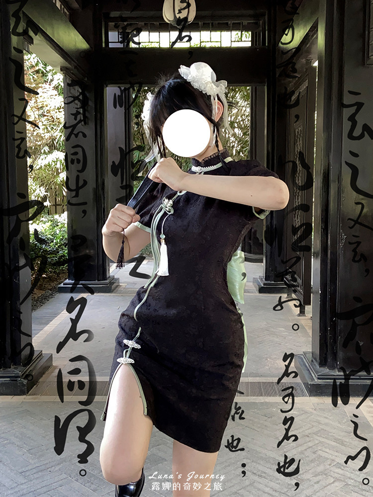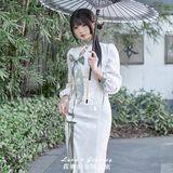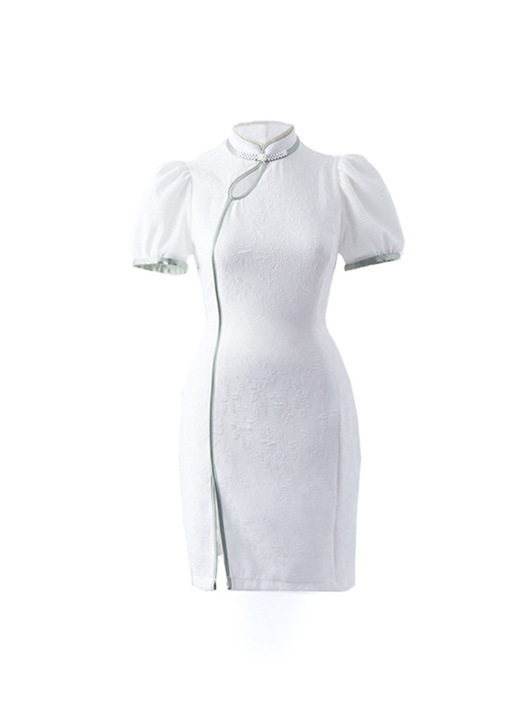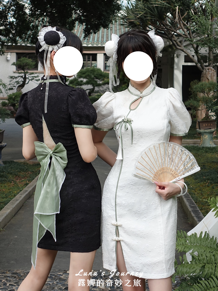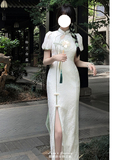 Луна улучшила Cheongsam Женщина -летнее белое и зеленое платье Длинное новое китайское национальное стиль Хань Элементы сладкие горячие подруги