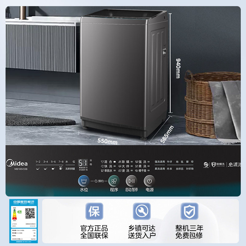 [Правительственные субсидии] Midea 10 кг большой мощность волновой колеса стиральная машина для удаления домохозяйств.