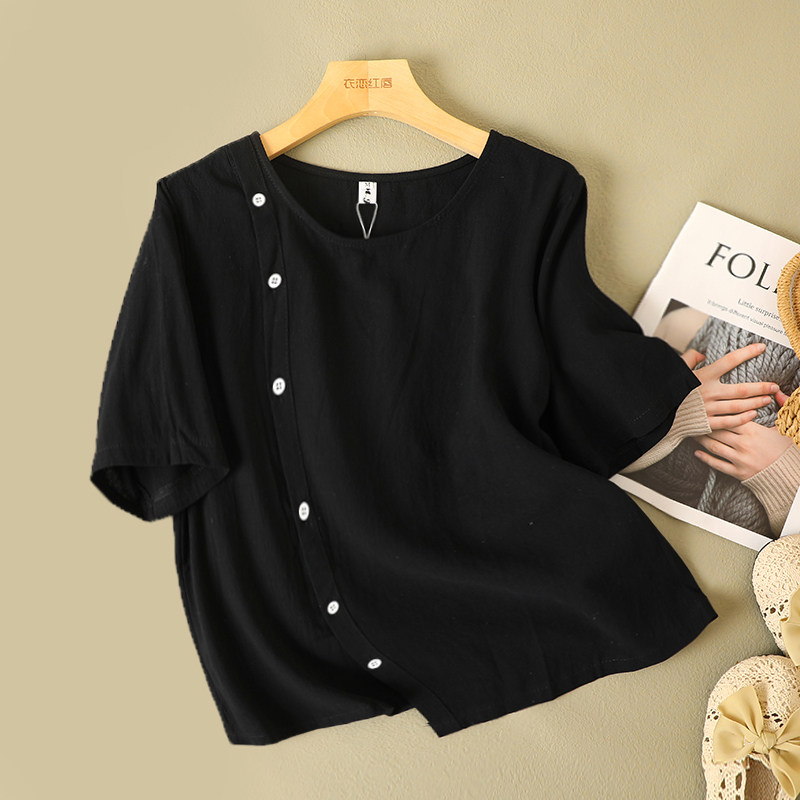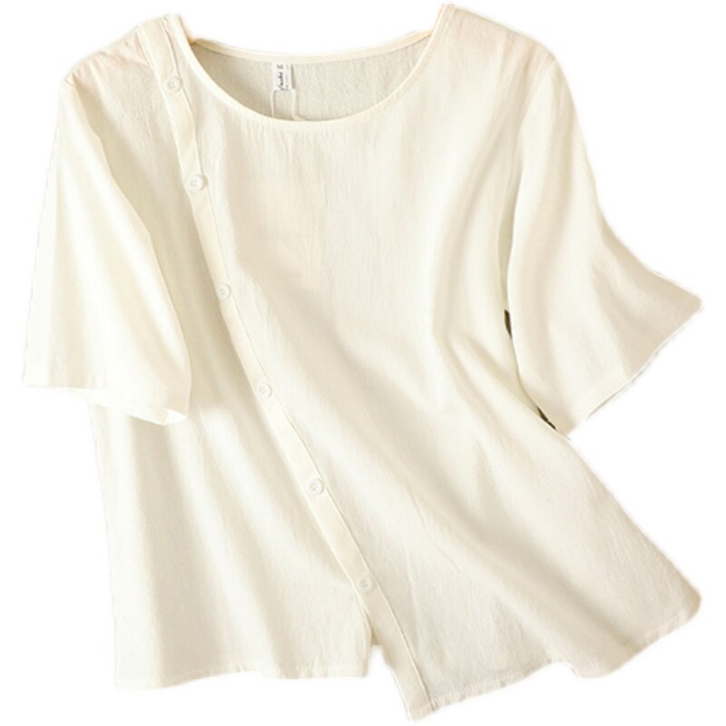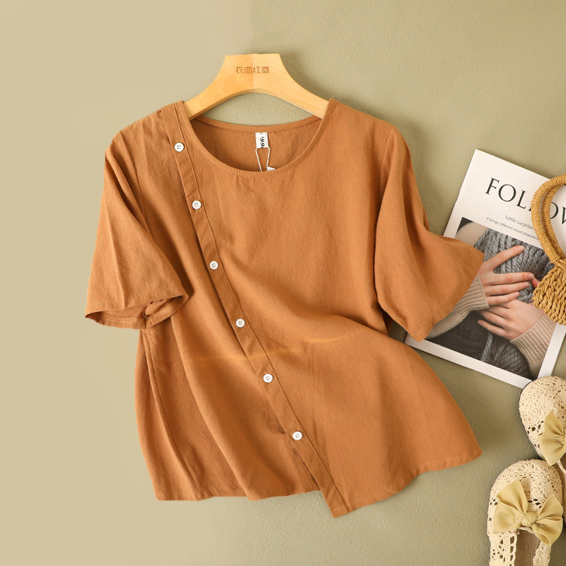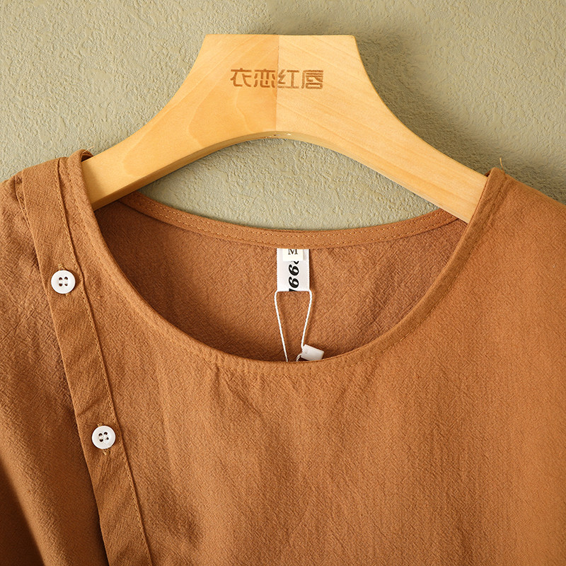 Цветная рубашка с круглым воротником, комплект для отдыха, из хлопка и льна, свободный крой
