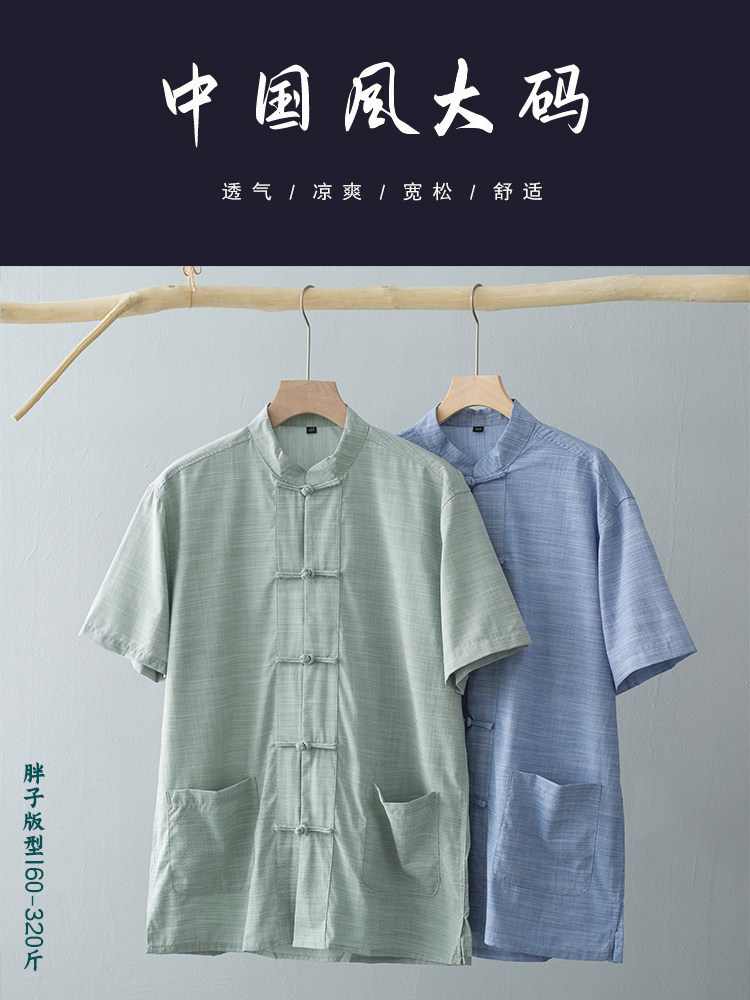 Летняя тонкая рубашка, большой размер, короткий рукав, китайский стиль, оверсайз