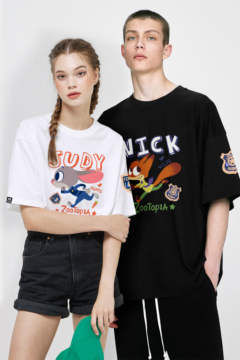 Zootopia Judy Nick совместная пара с короткими рукавами, разные футболки для пар, анимационная периферийная одежда для мужчин и женщин