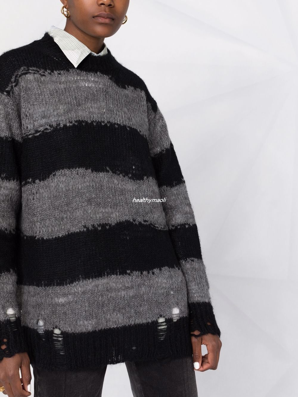 Пятно скидки ~ Подлинные покупки Acne Studios Wide Stripes и имитационные эффекты Свитер A60243