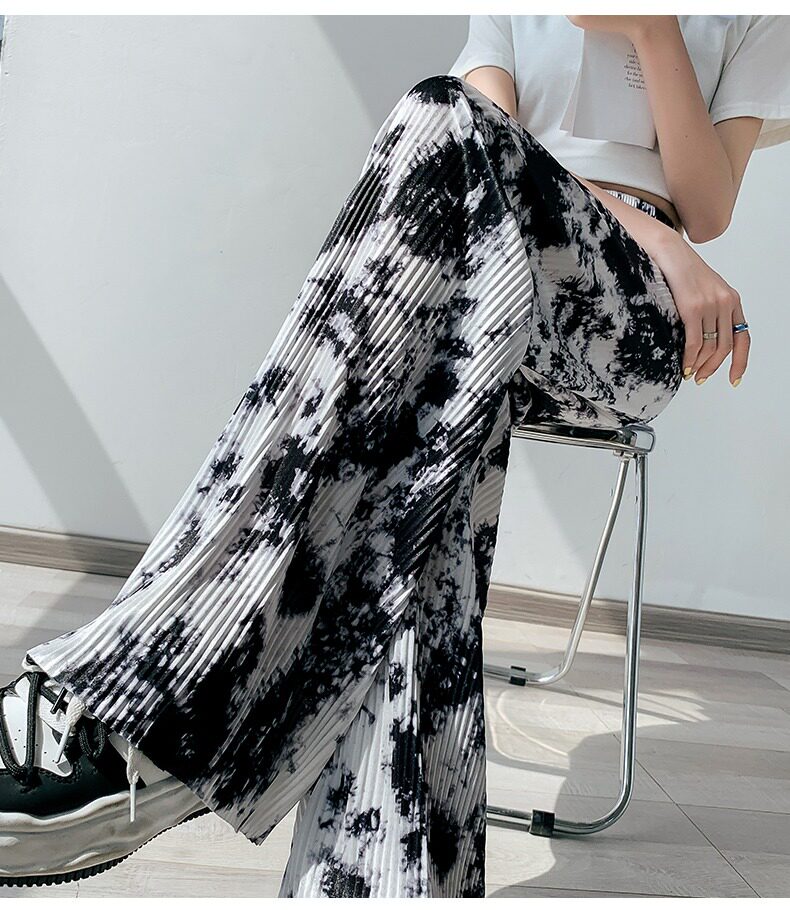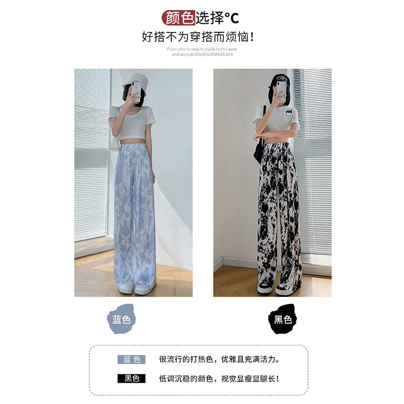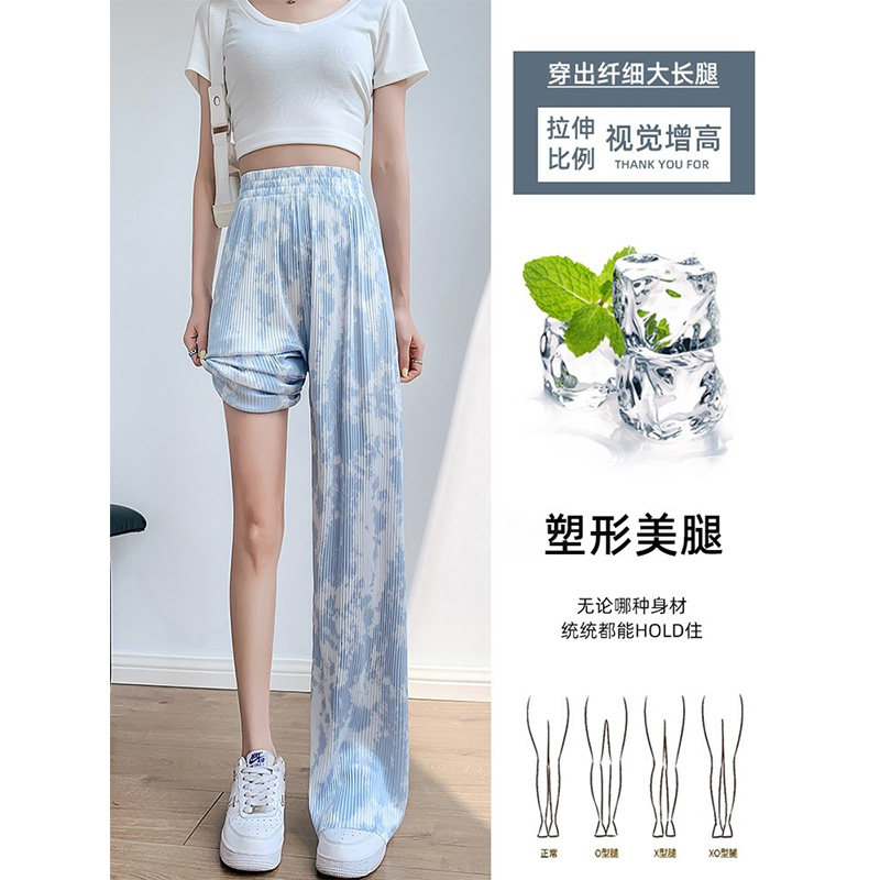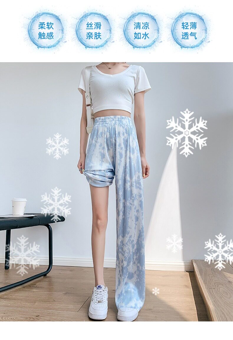 Синие тонкие дизайнерские шелковые штаны, высокая талия, свободный прямой крой, тренд сезона