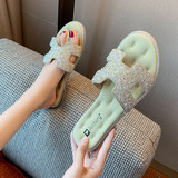 Летние тапочки, нескользящая обувь, универсальные пляжные слайдеры из жемчуга, 2022, в стиле Шанель, мягкая подошва