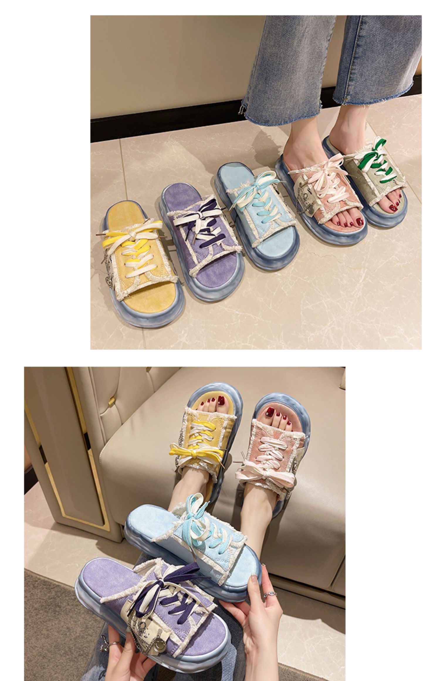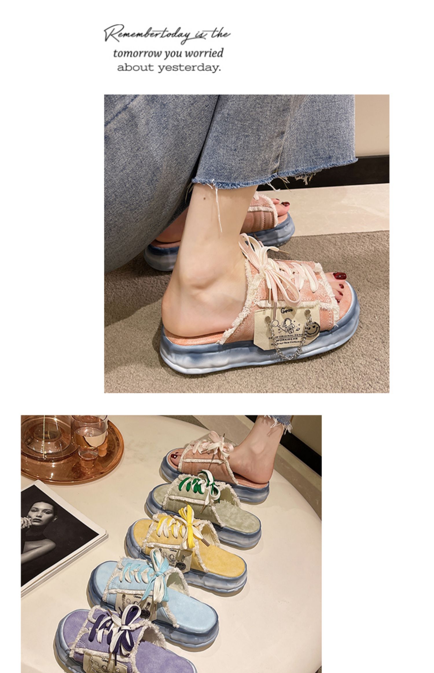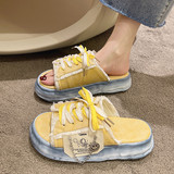 Тапочки, универсальная обувь на платформе, тканевые свежие слайдеры, популярно в интернете, коллекция 2022
