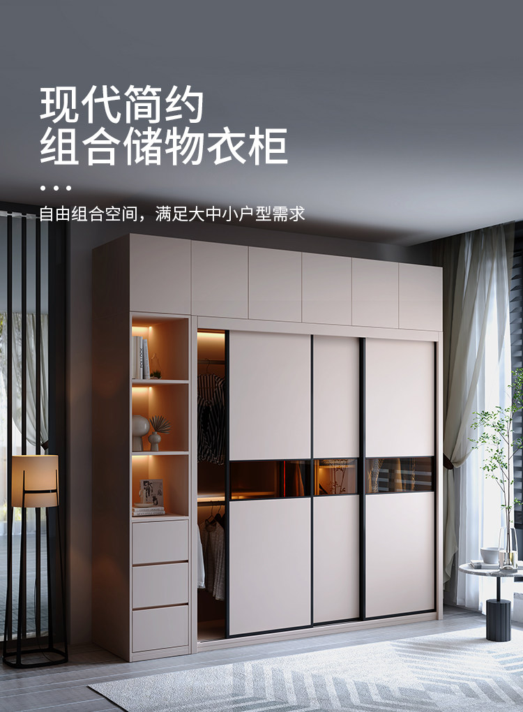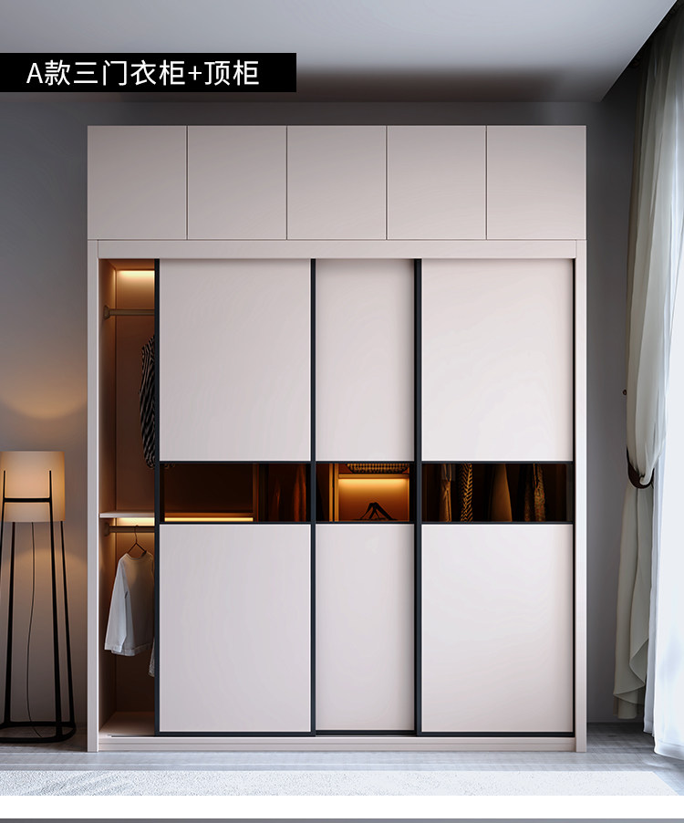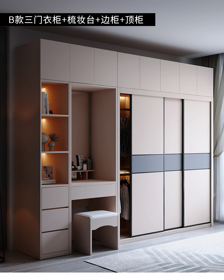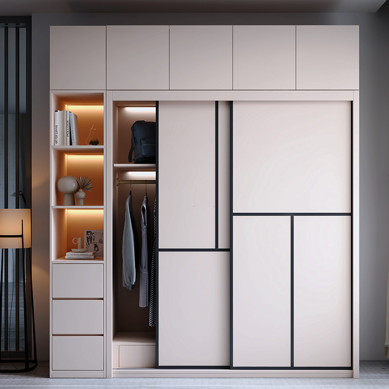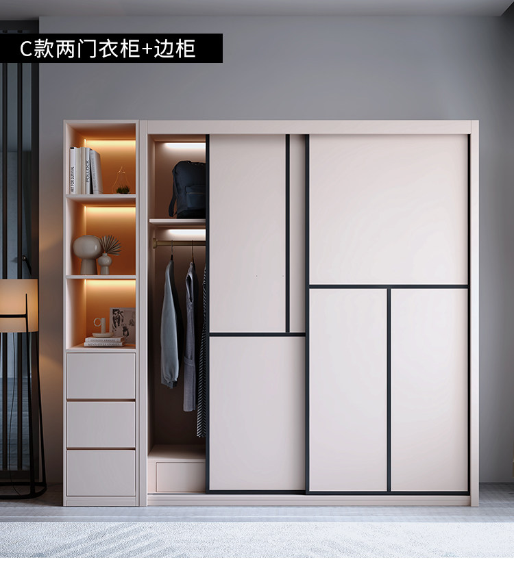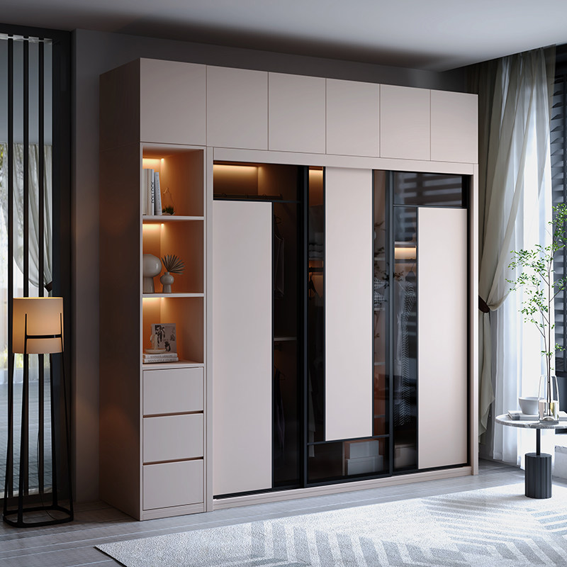 Гардероб раздвижная дверь Экономичная простая современная сумка Установка спальни Домохозяйство маленькая квартира легкая роскошная интегрированная раздвижная дверь гардероб