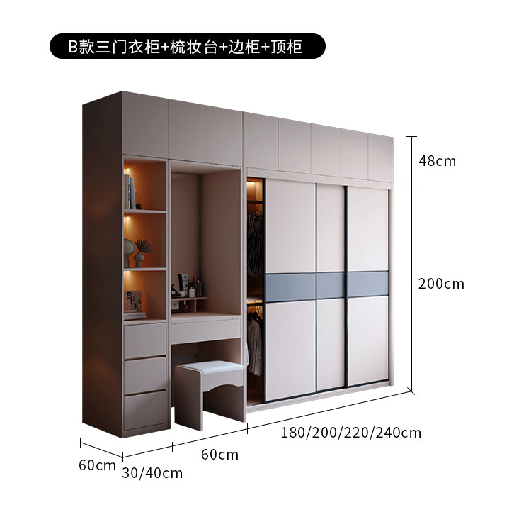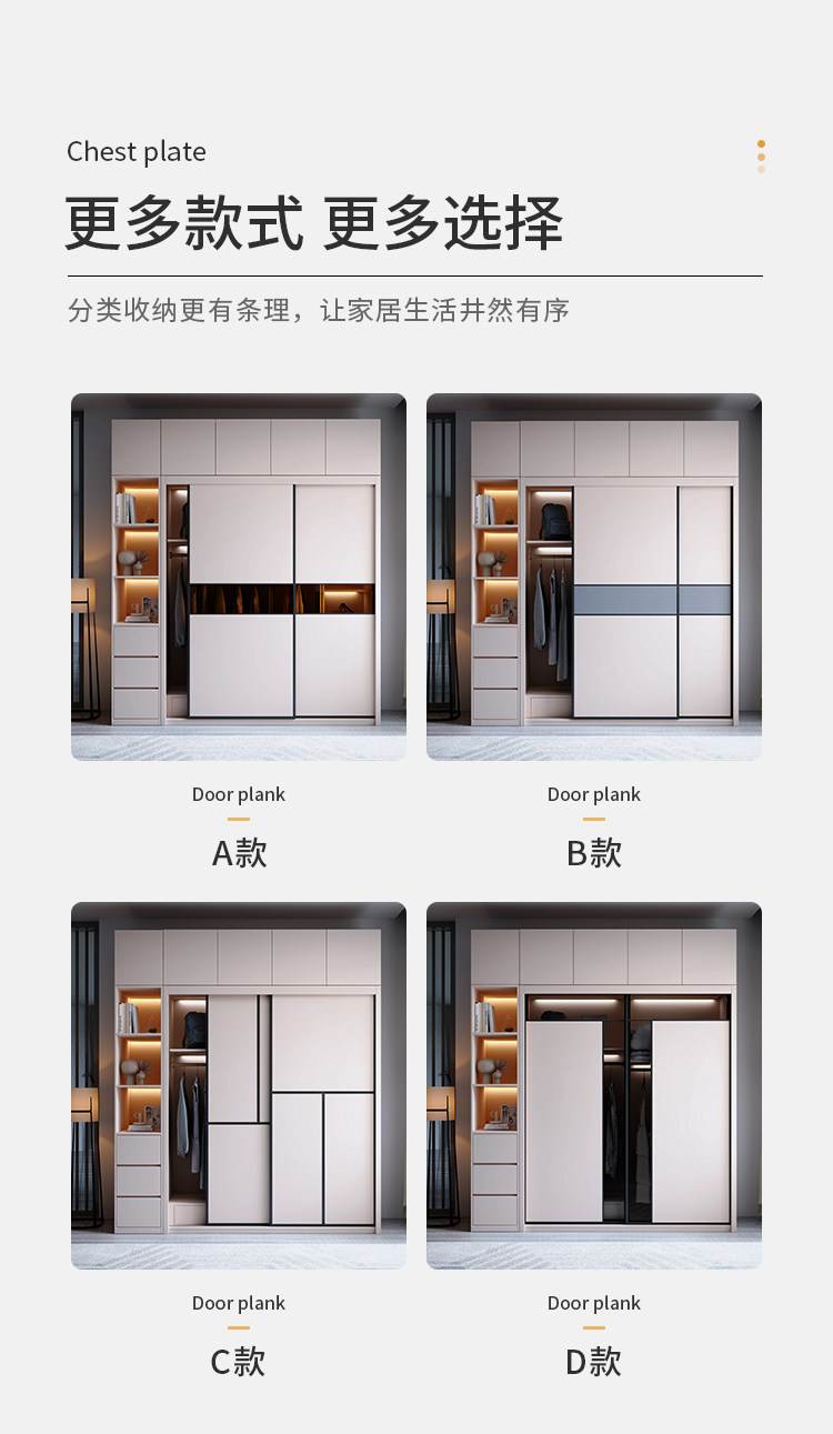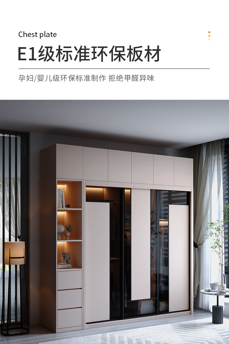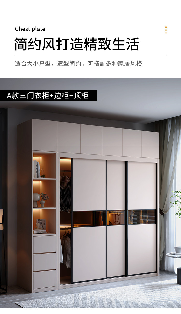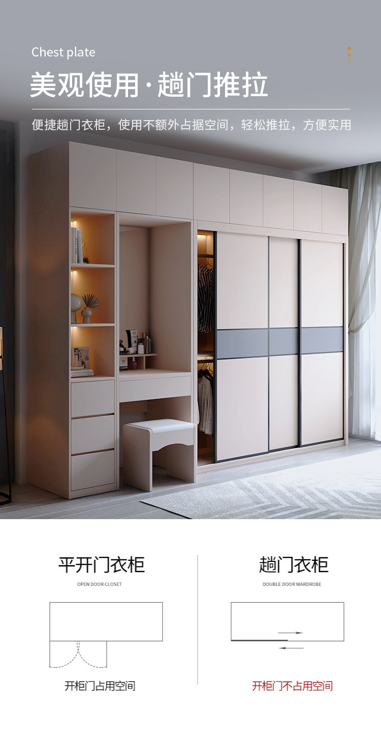 Гардероб раздвижная дверь Экономичная простая современная сумка Установка спальни Домохозяйство маленькая квартира легкая роскошная интегрированная раздвижная дверь гардероб