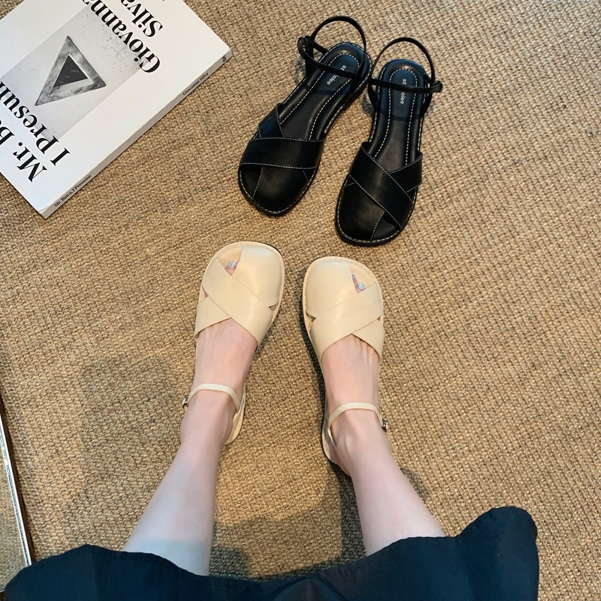 Сандалии, летняя плетеная обувь, из натуральной кожи