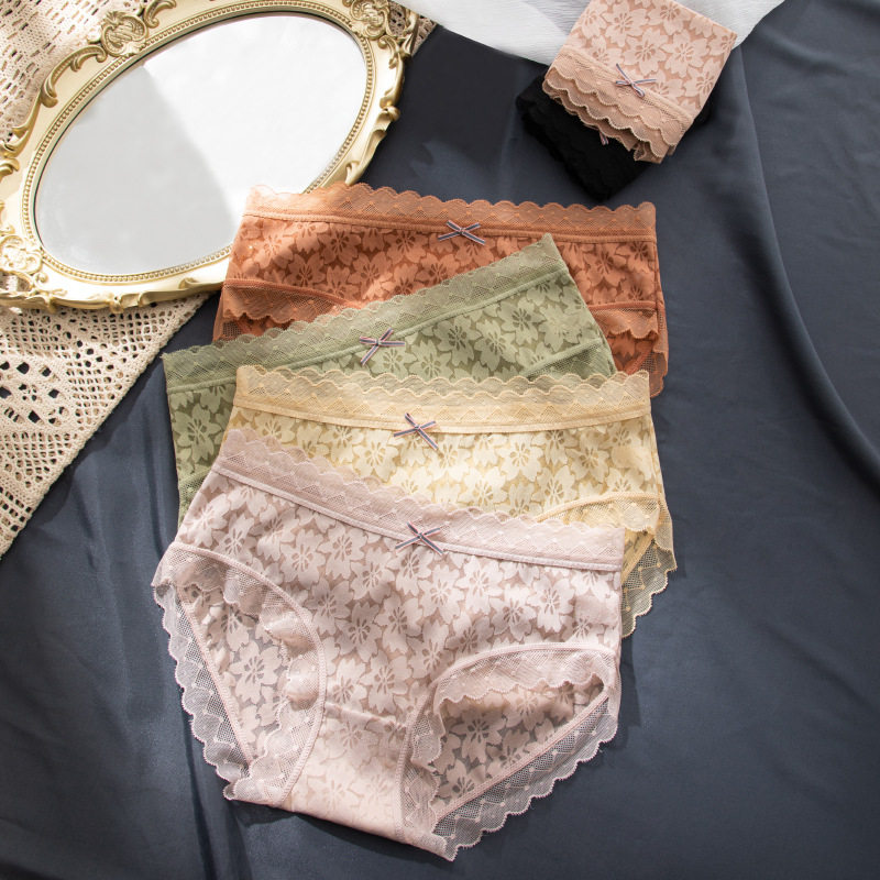 Летнее нижнее белье, шелковые кружевные сексуальные хлопковые дышащие комфортные штаны с бантиком