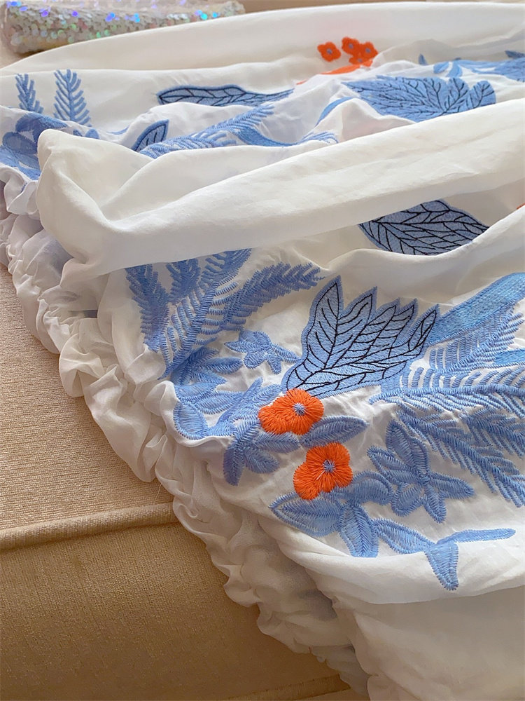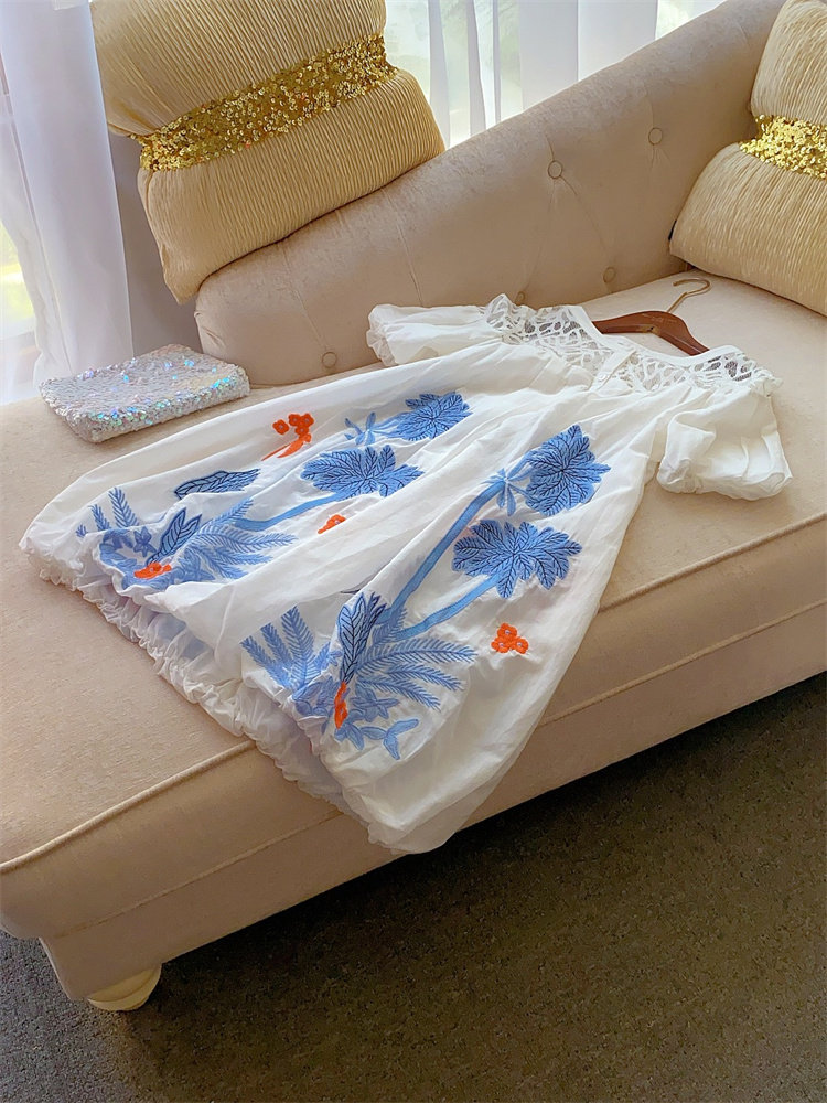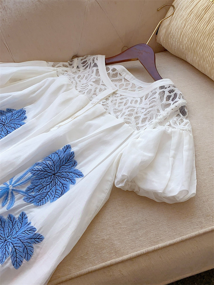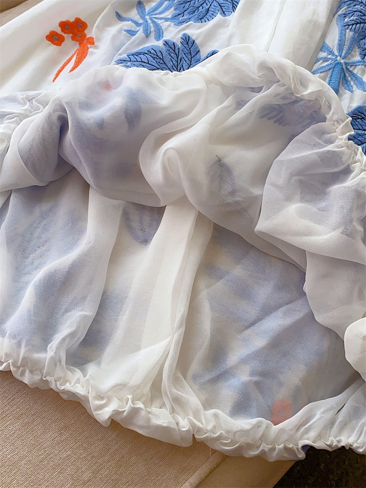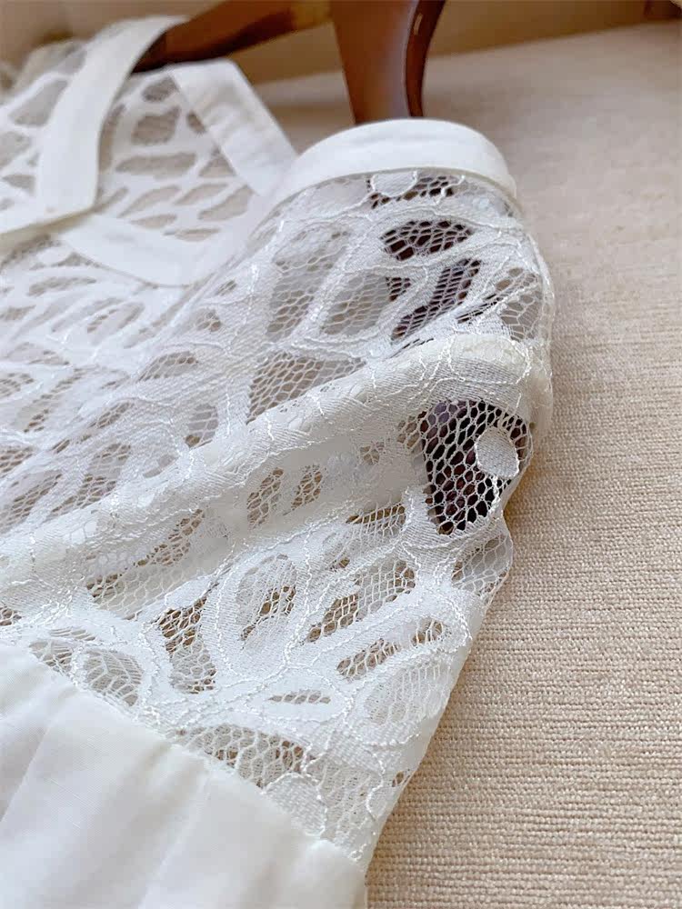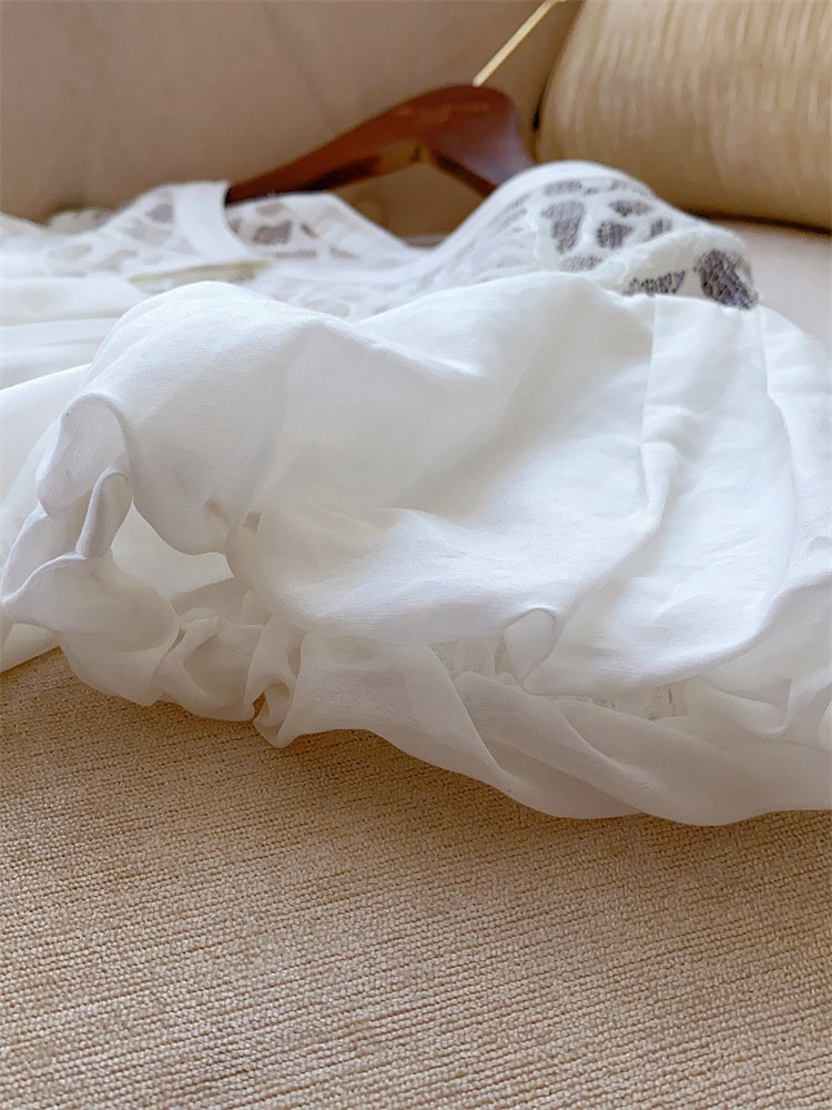 Шелковый комфортный дышащий кружевной фонарь, белое летнее платье, юбка, европейский стиль, в цветочек