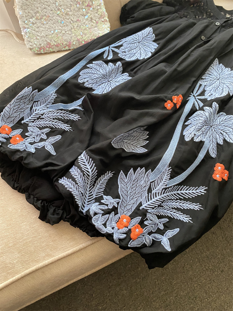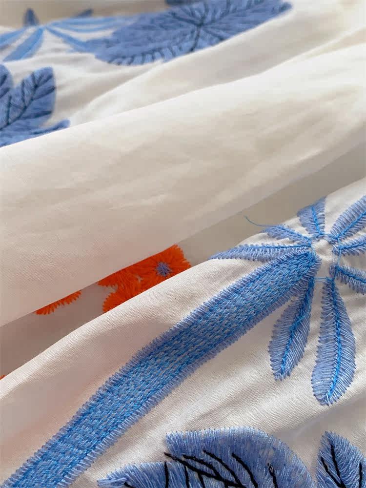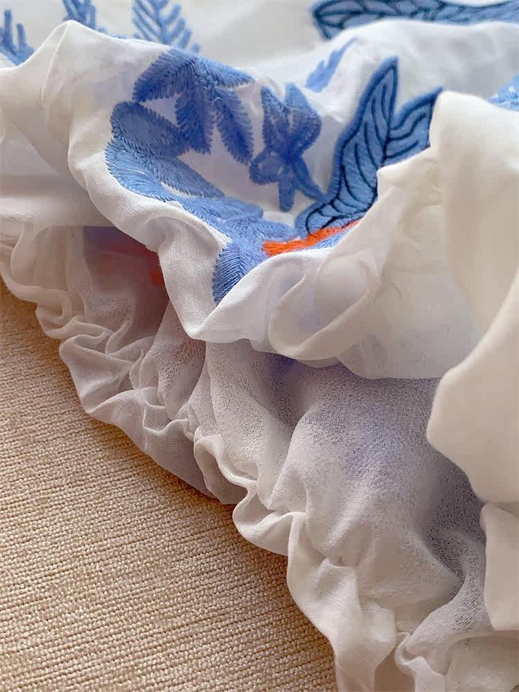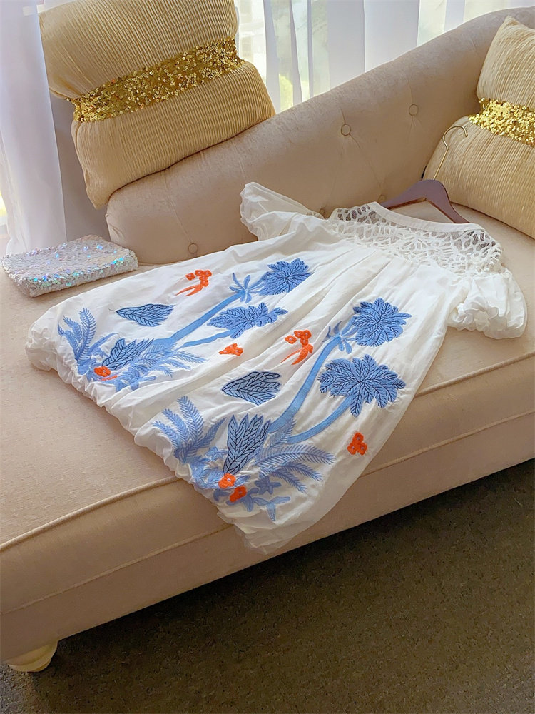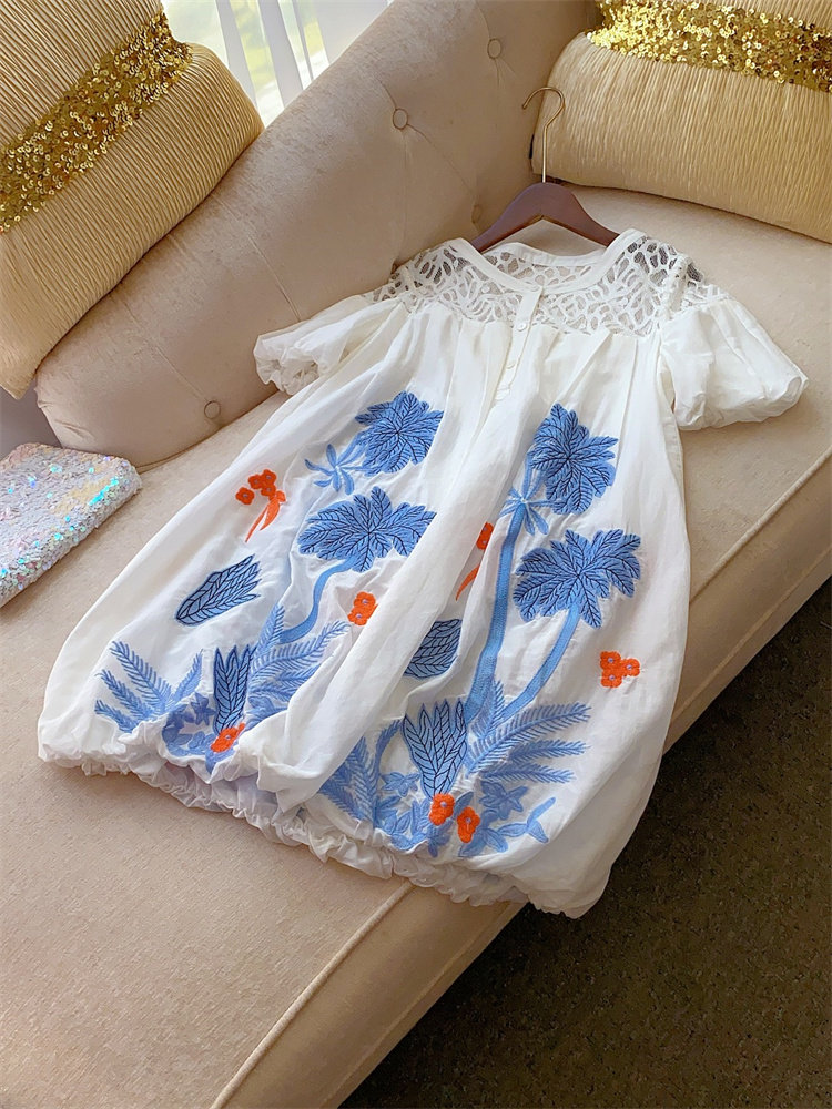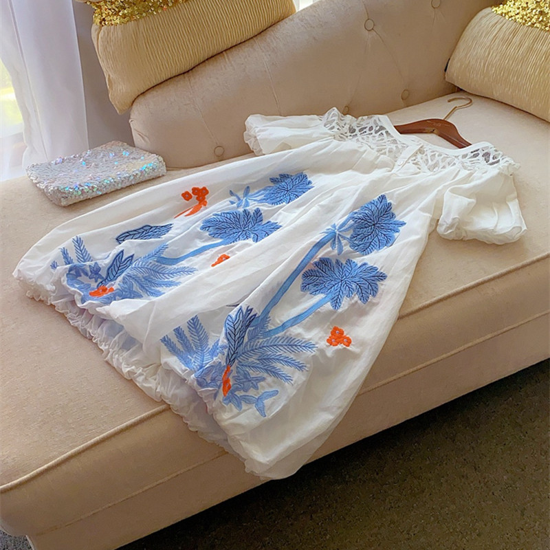 Шелковый комфортный дышащий кружевной фонарь, белое летнее платье, юбка, европейский стиль, в цветочек