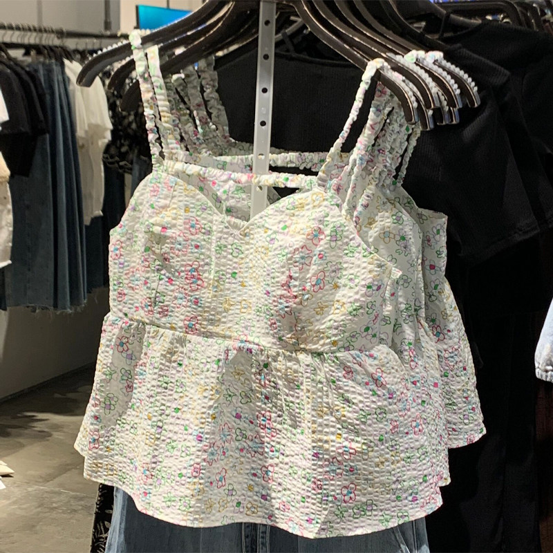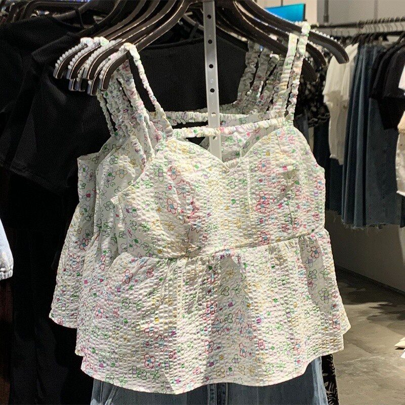 Летняя милая сексуальная короткая майка топ, городской стиль, в цветочек