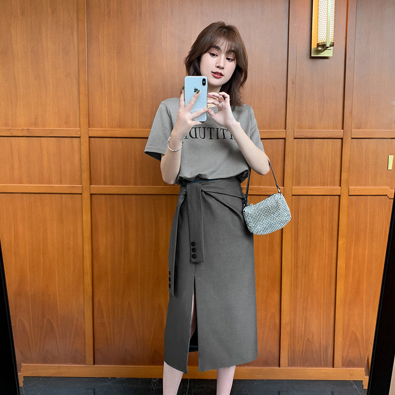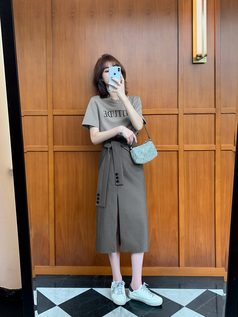 小谷粒 Юбка, летний комплект, платье-футболка, подходит для подростков, по фигуре