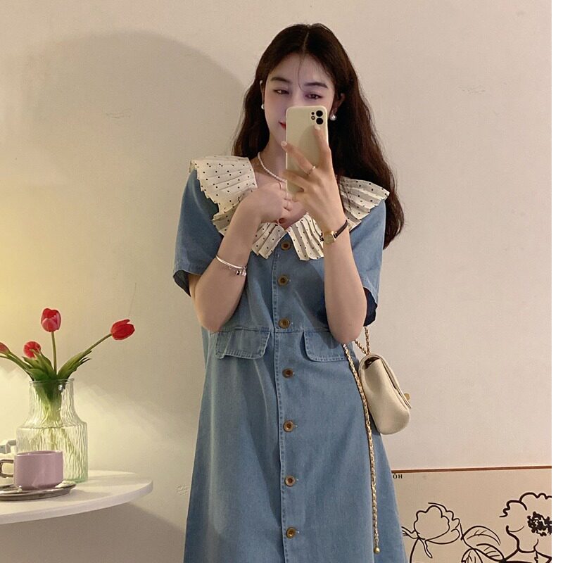 Джинсовая юбка, платье, летняя приталенная кукла, приталенный корсет, мини-юбка, большой размер