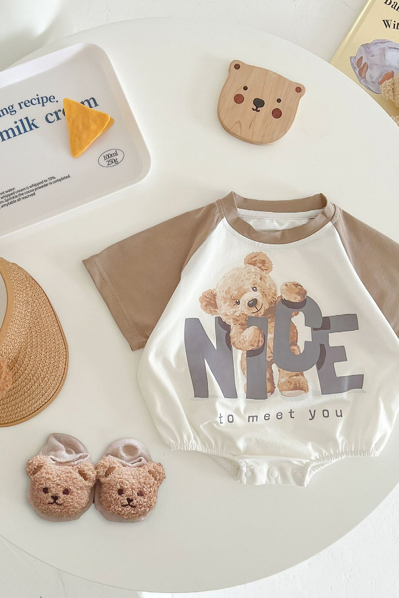 Летнее боди подходит для мужчин и женщин для девочек для новорожденных, тонкий комбинезон для раннего возраста, с медвежатами