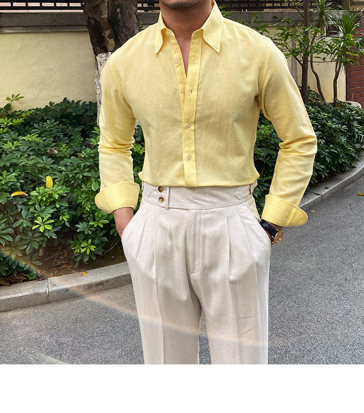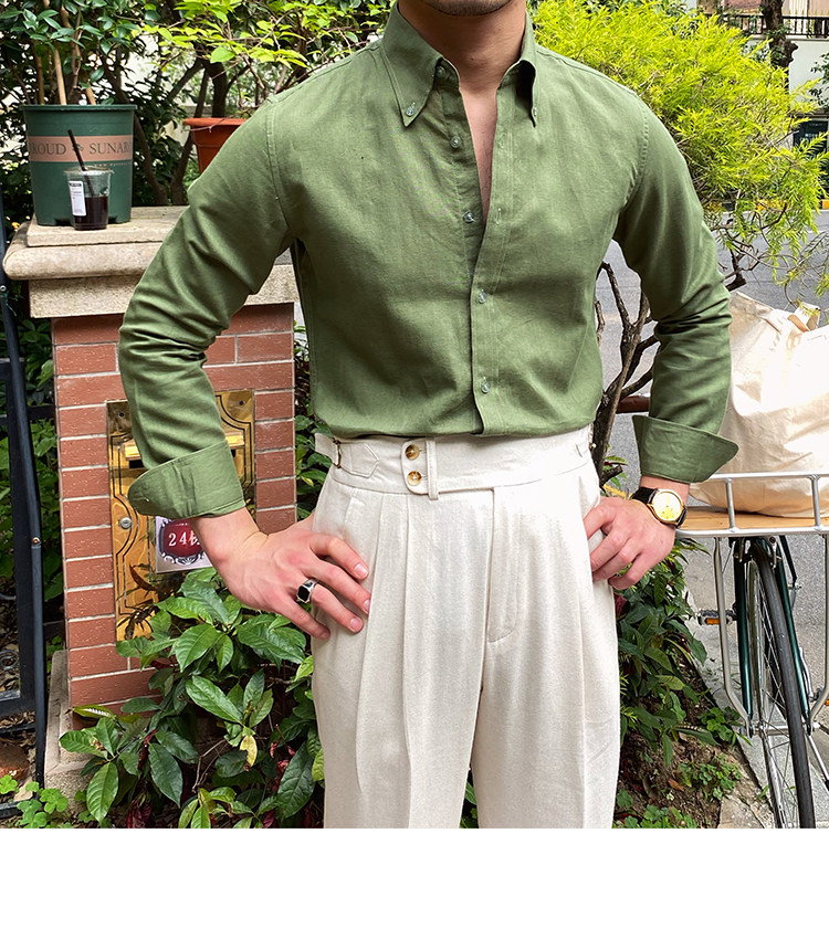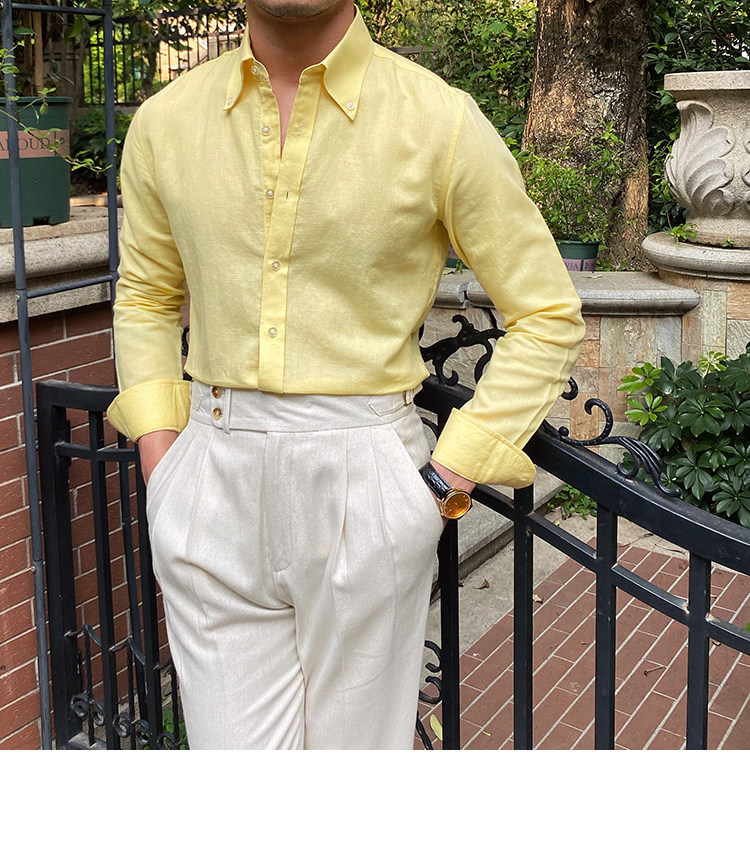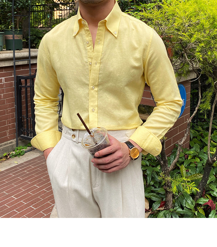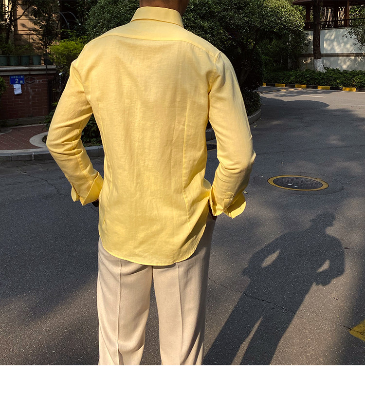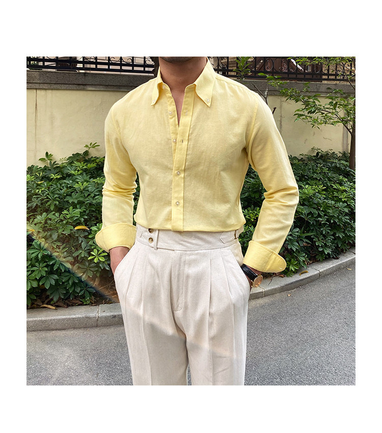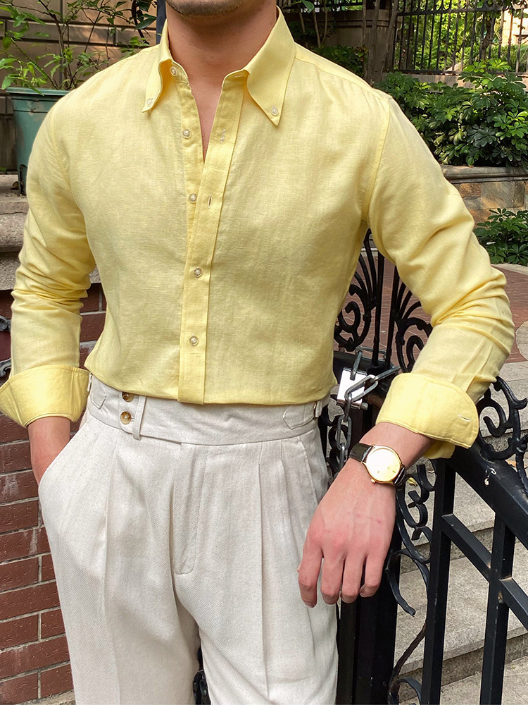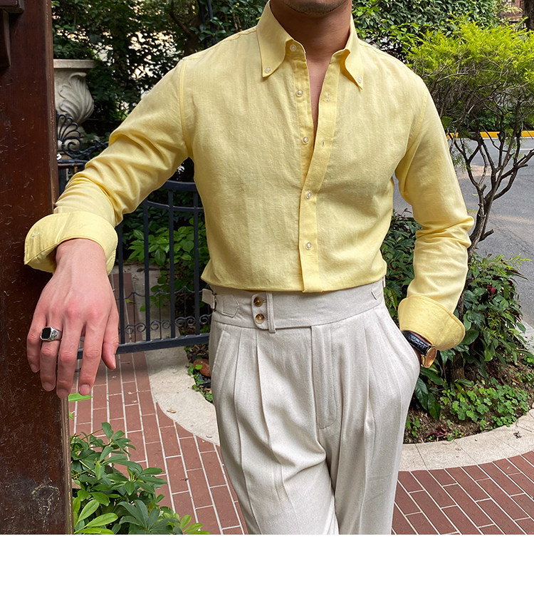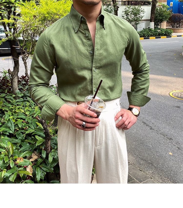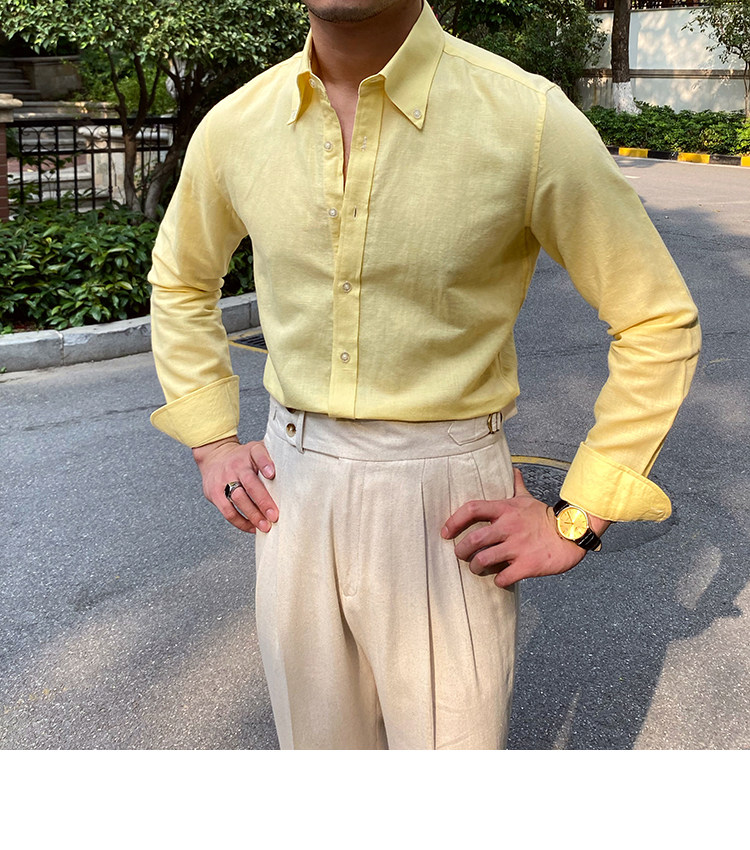 Lu San LAOSHU K-стиль, британская модная роскошная повседневная рубашка, тонкая льняная однотонная рубашка в стиле ретро, модная мужская рубашка