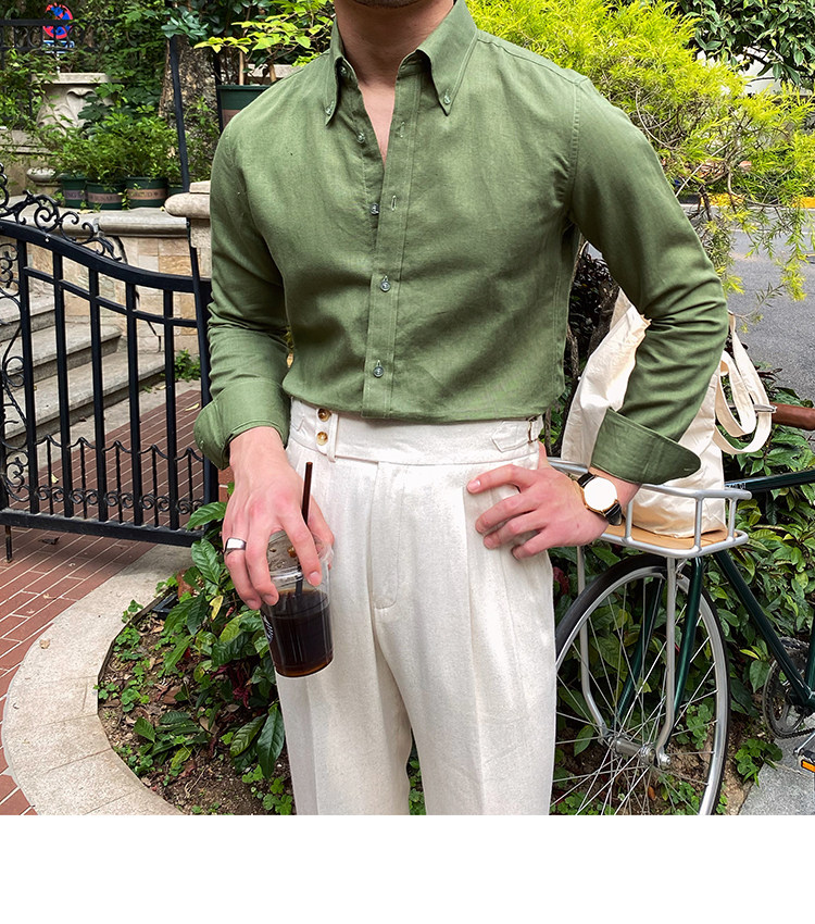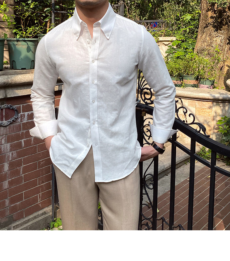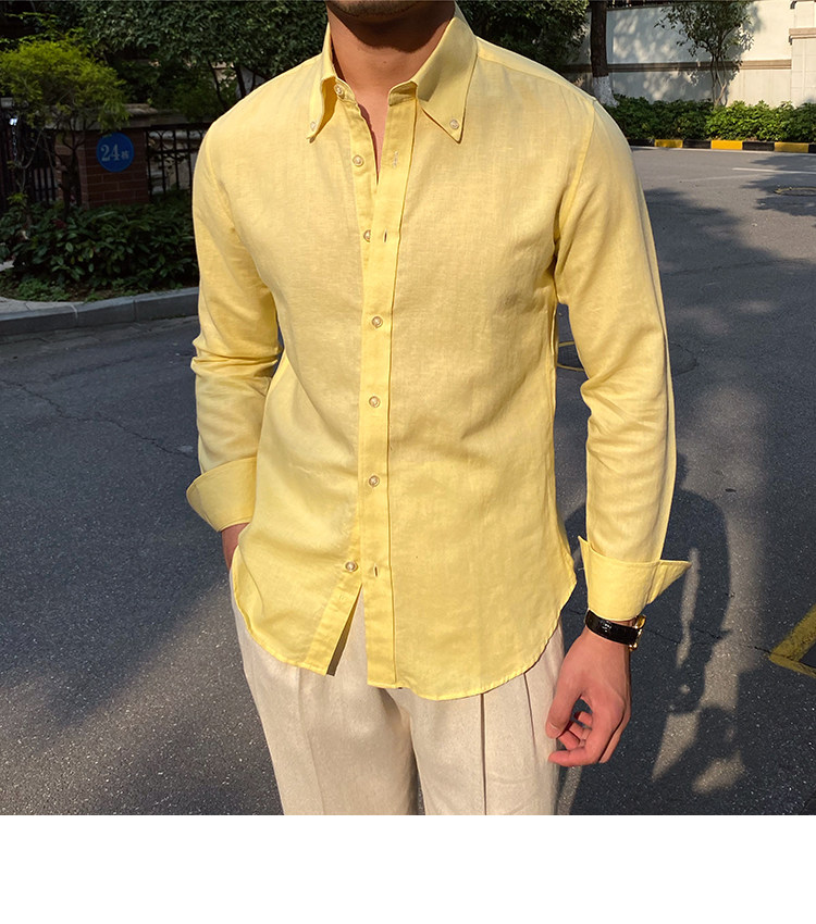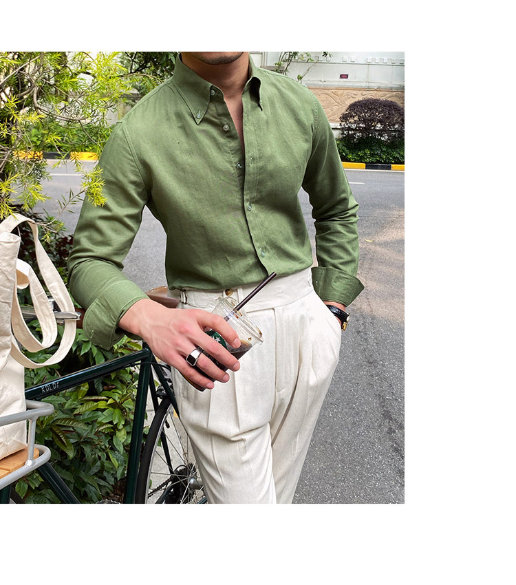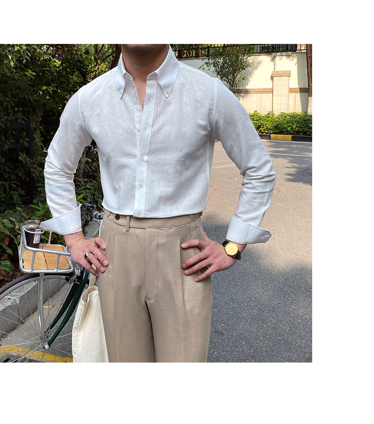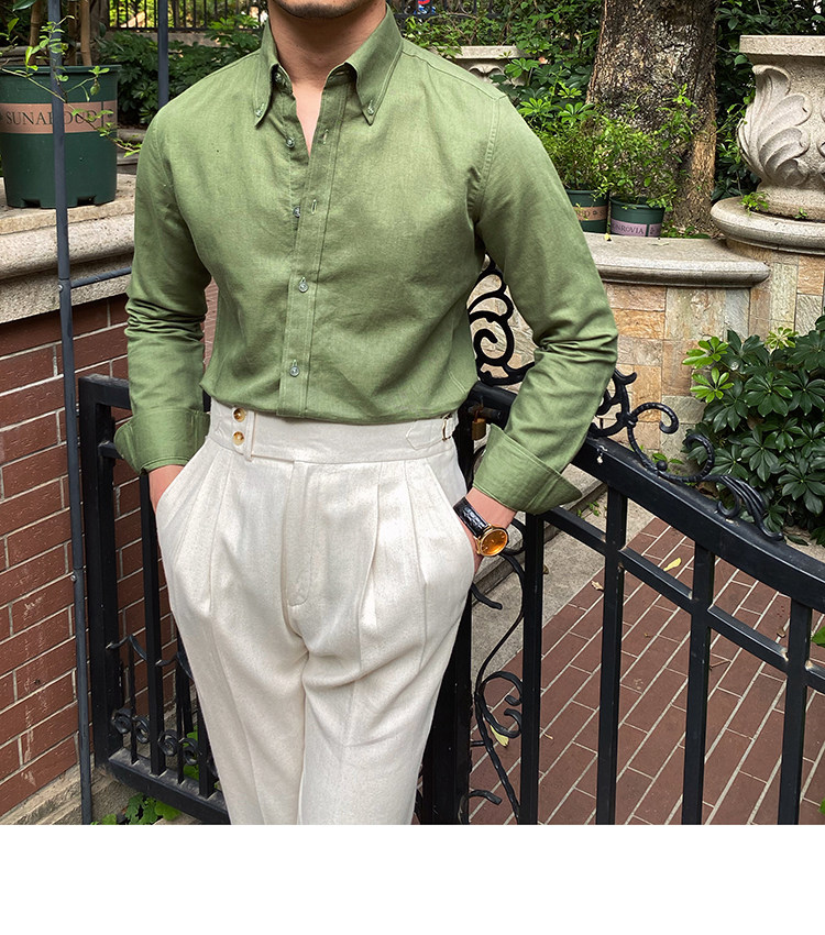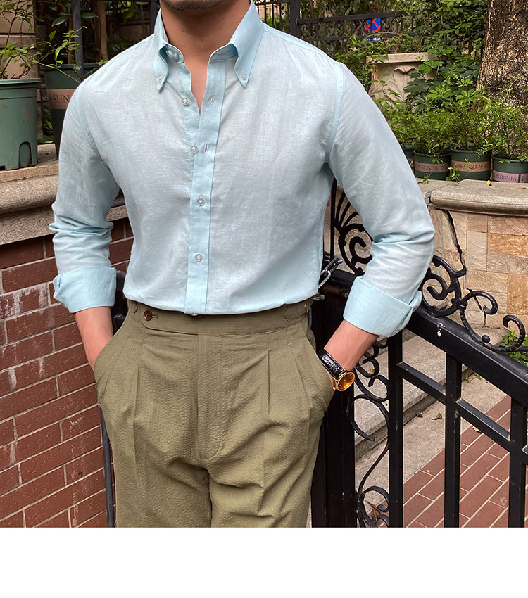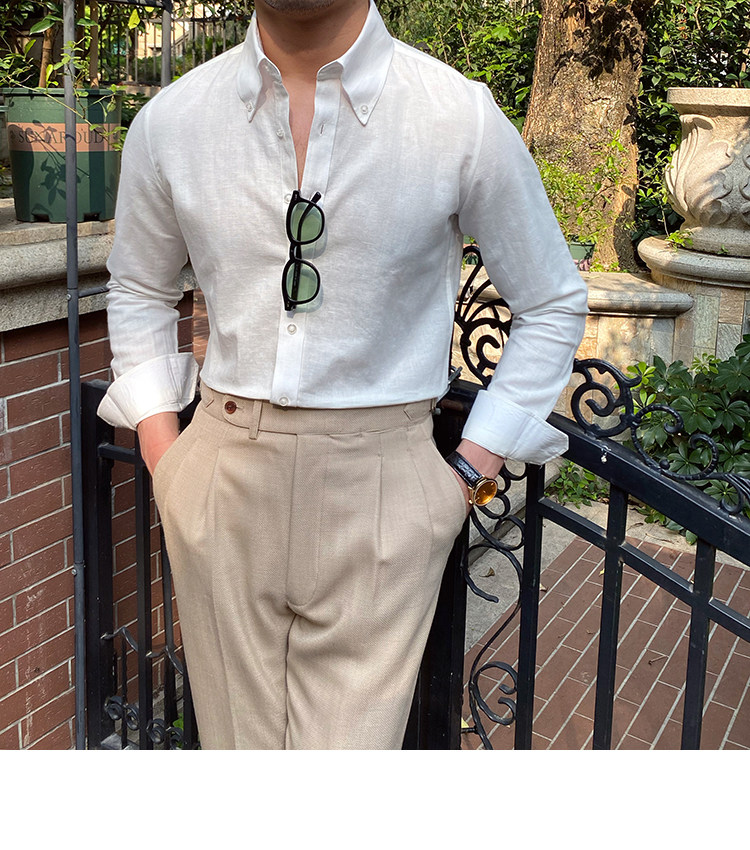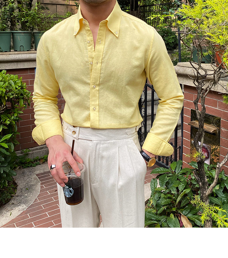 Lu San LAOSHU K-стиль, британская модная роскошная повседневная рубашка, тонкая льняная однотонная рубашка в стиле ретро, модная мужская рубашка