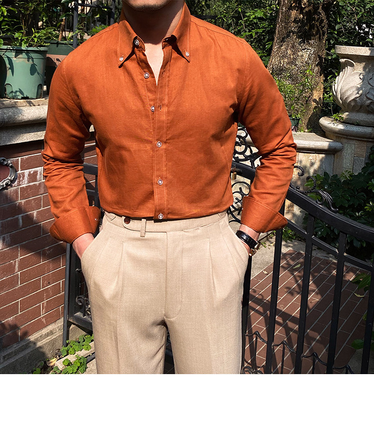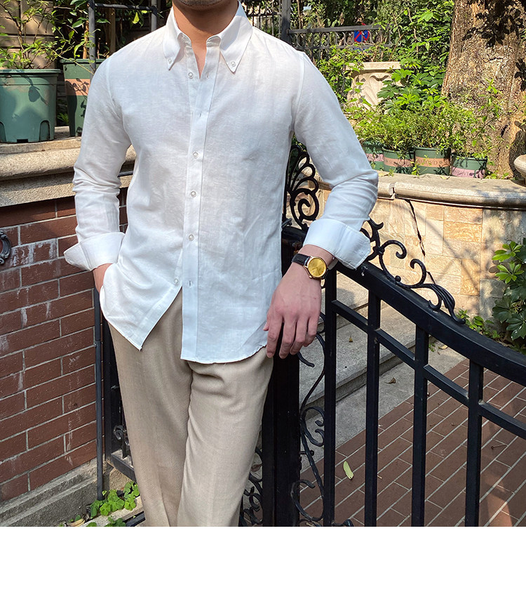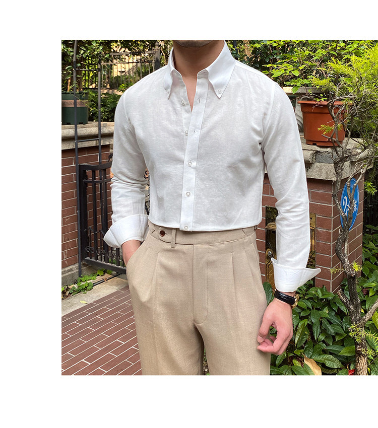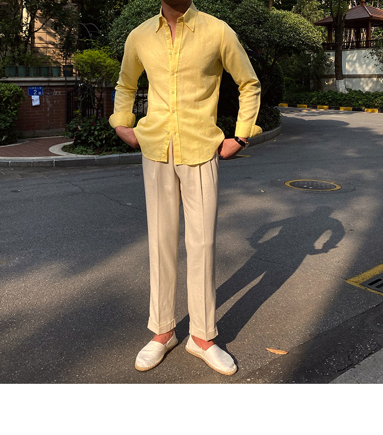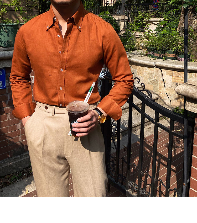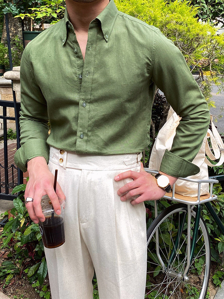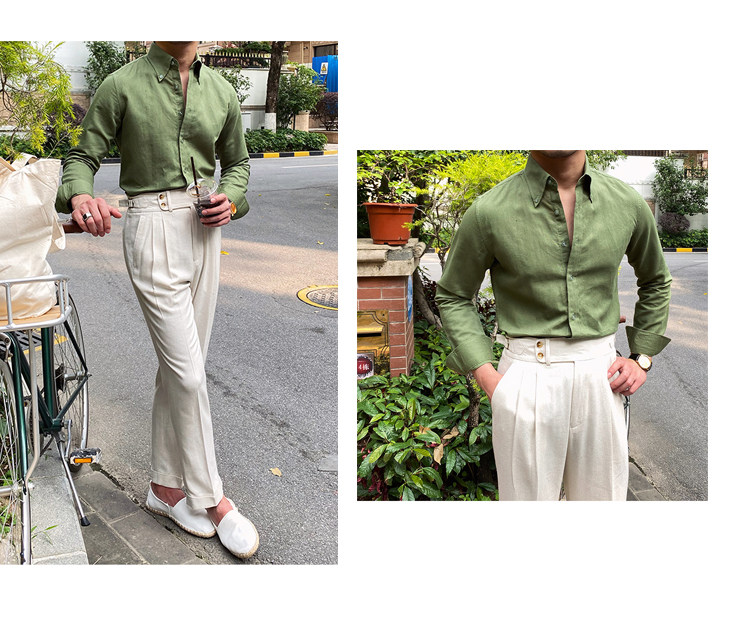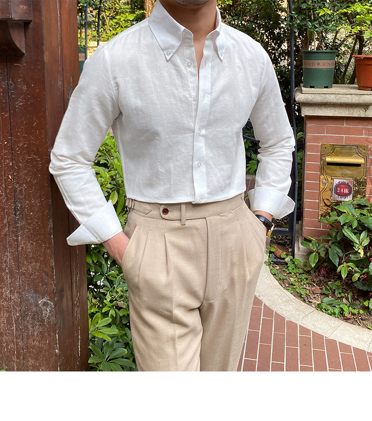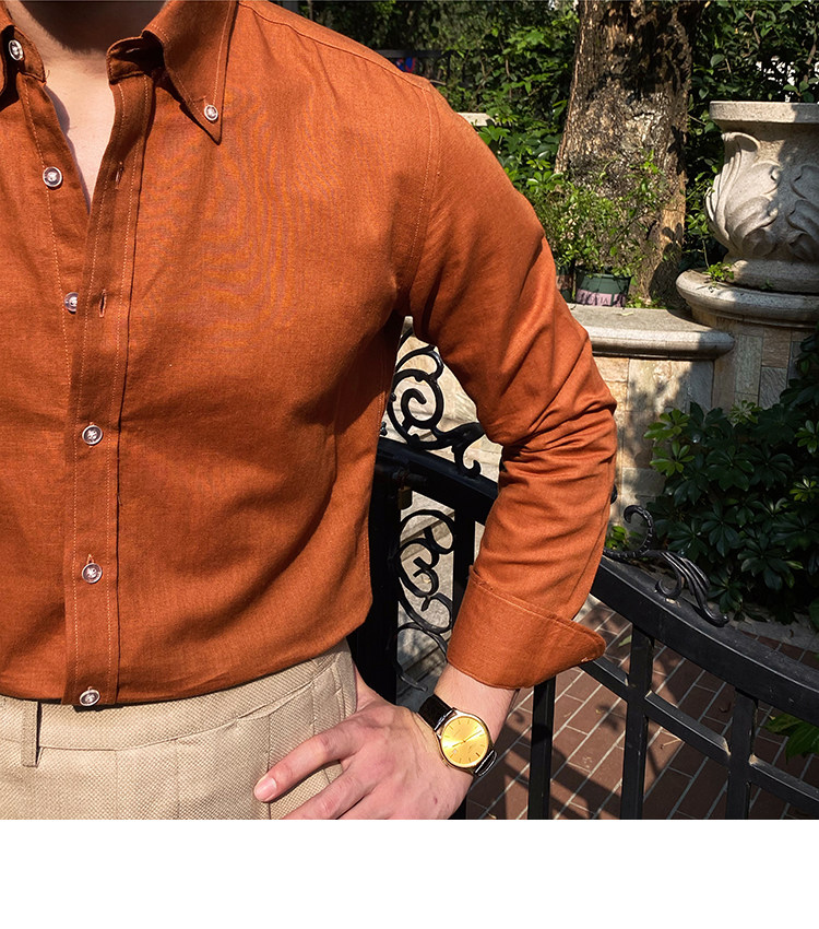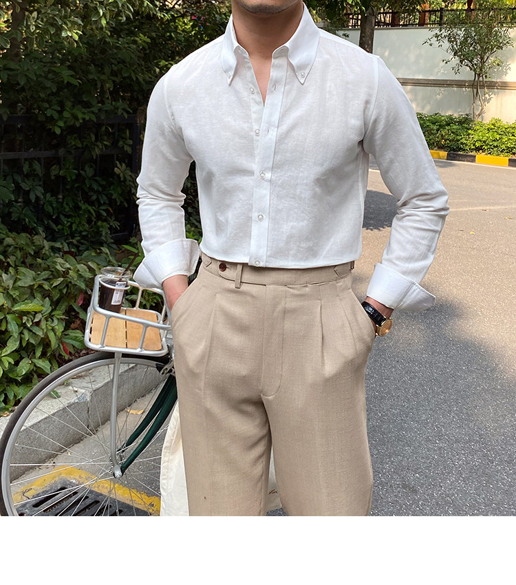 Lu San LAOSHU K-стиль, британская модная роскошная повседневная рубашка, тонкая льняная однотонная рубашка в стиле ретро, модная мужская рубашка