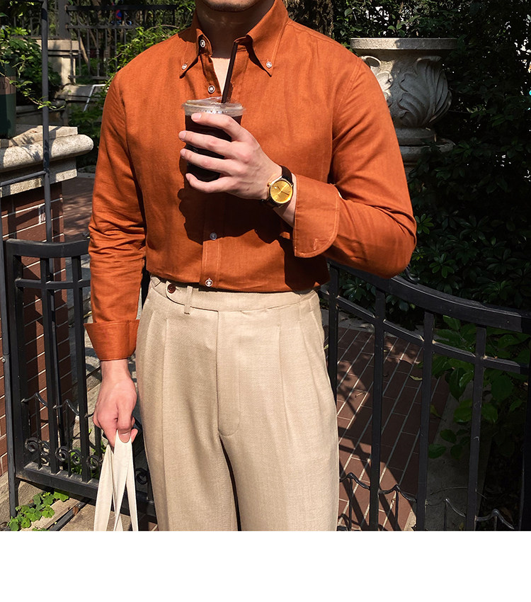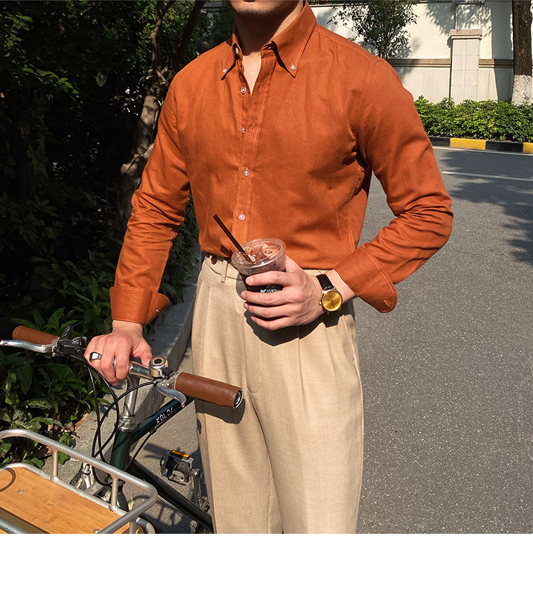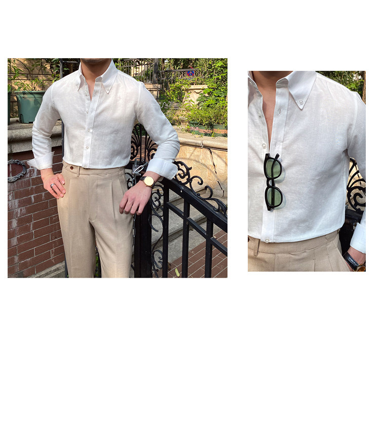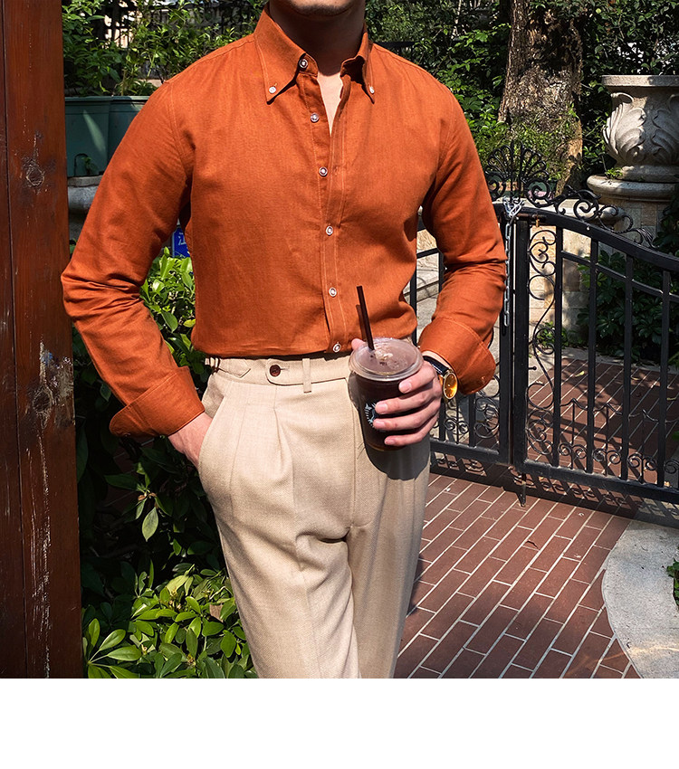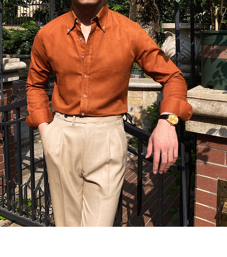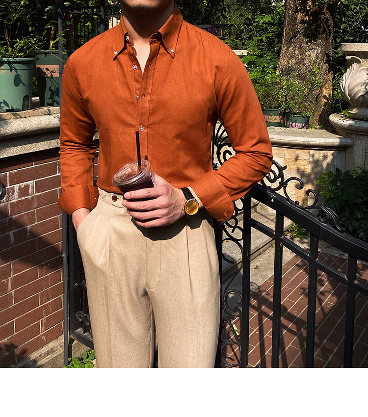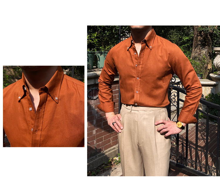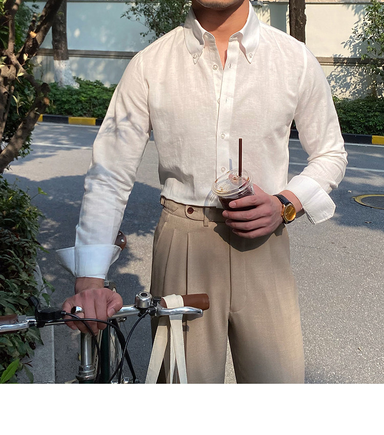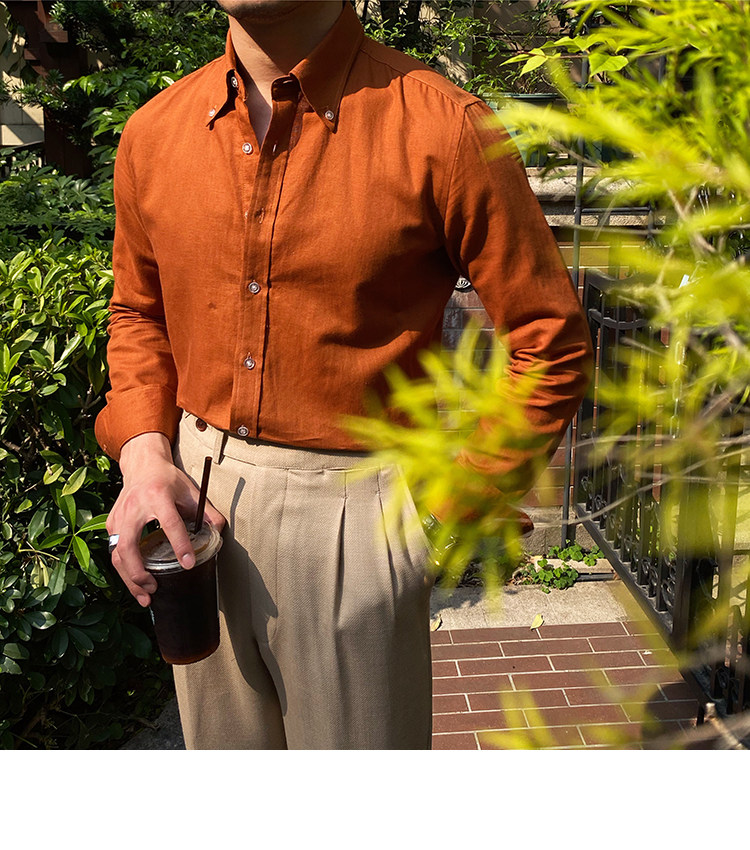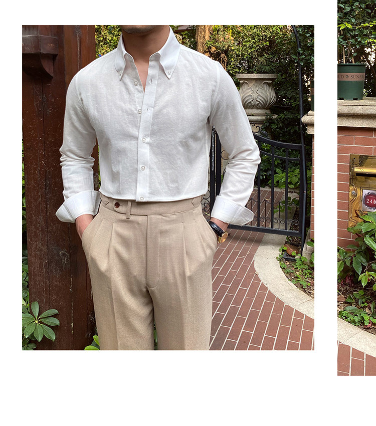 Lu San LAOSHU K-стиль, британская модная роскошная повседневная рубашка, тонкая льняная однотонная рубашка в стиле ретро, модная мужская рубашка