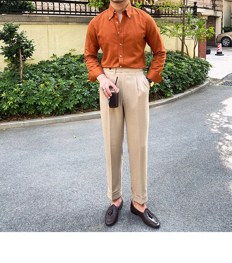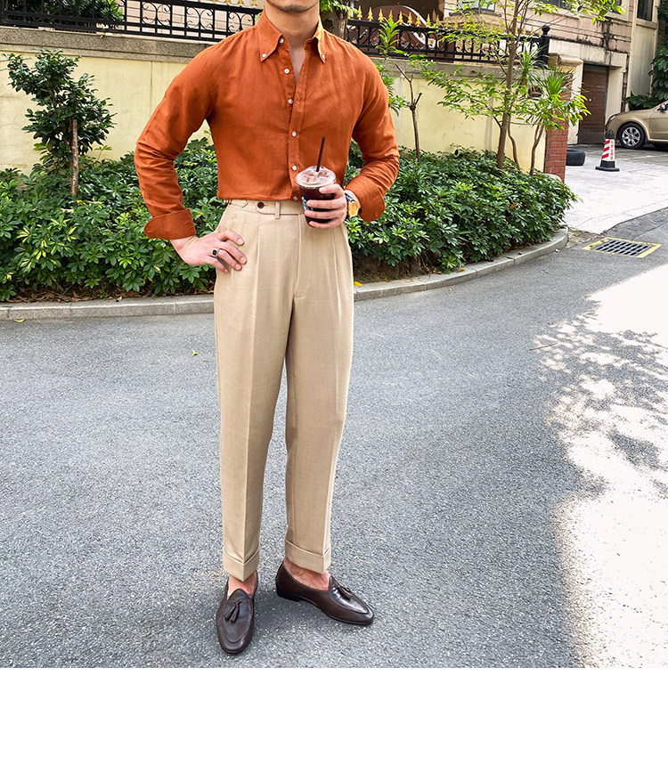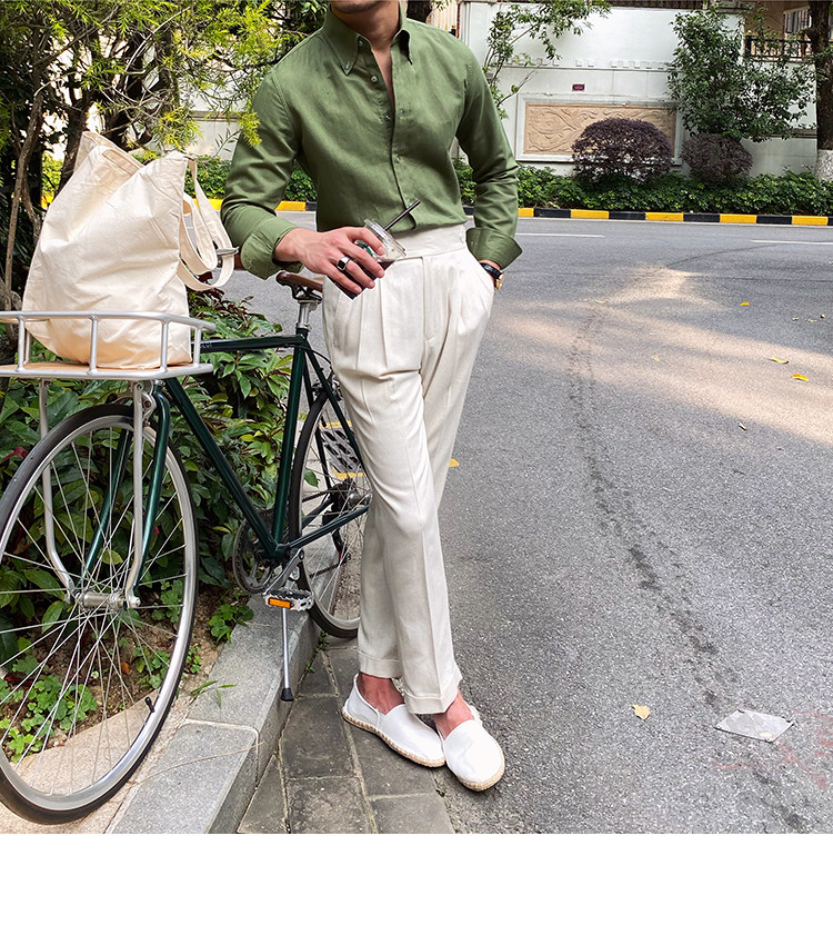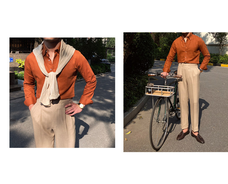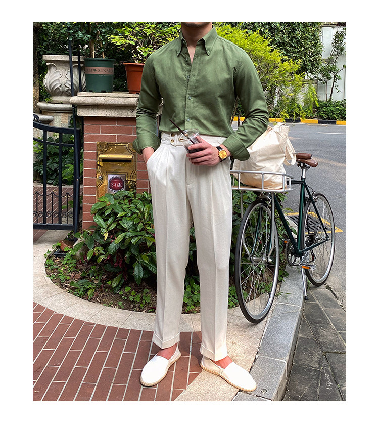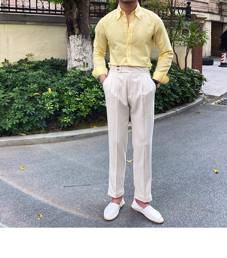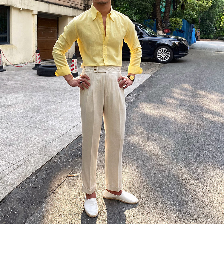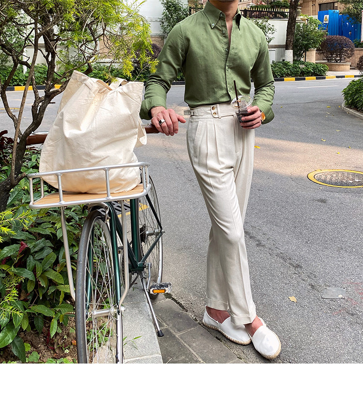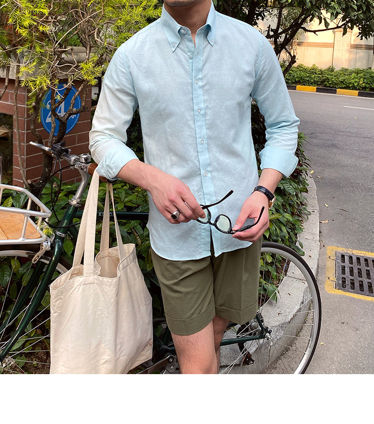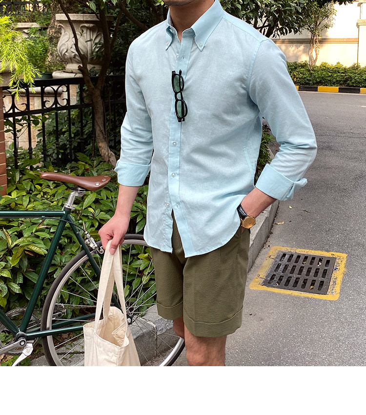 Lu San LAOSHU K-стиль, британская модная роскошная повседневная рубашка, тонкая льняная однотонная рубашка в стиле ретро, модная мужская рубашка