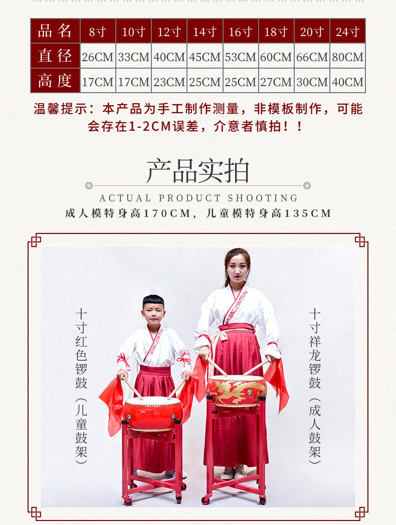 Большой барабанный килограмм барабан Китай красный барабан барабан мощный барабан с плоским барабаном для взрослых детей обучение барабана