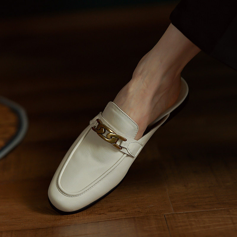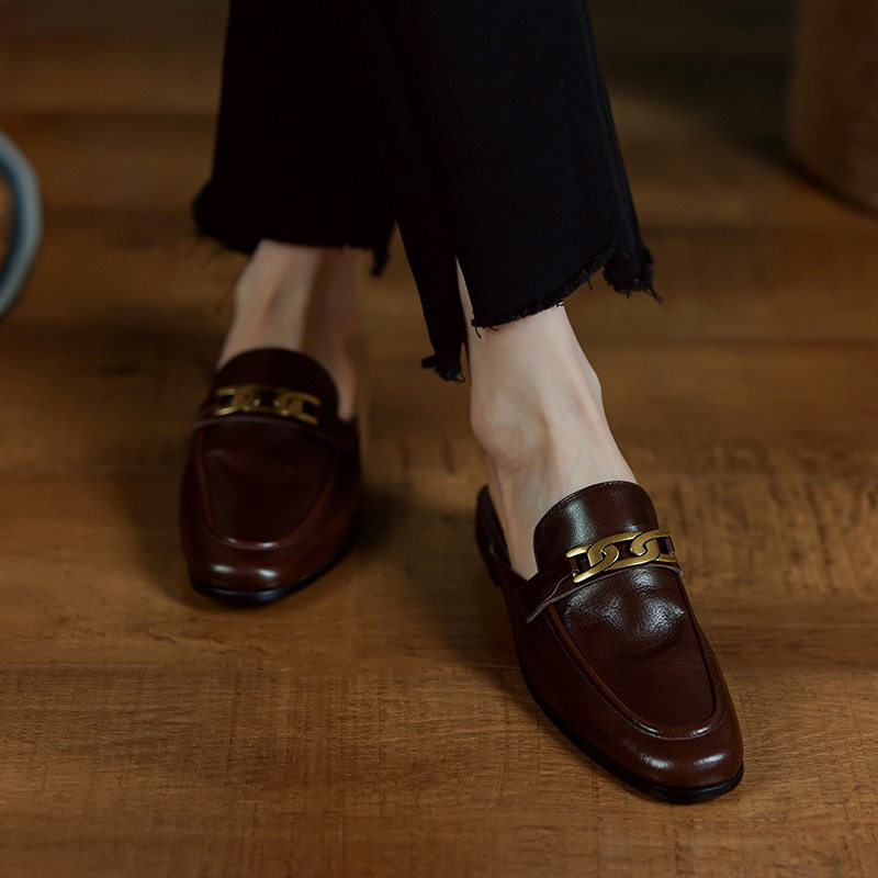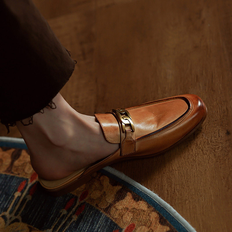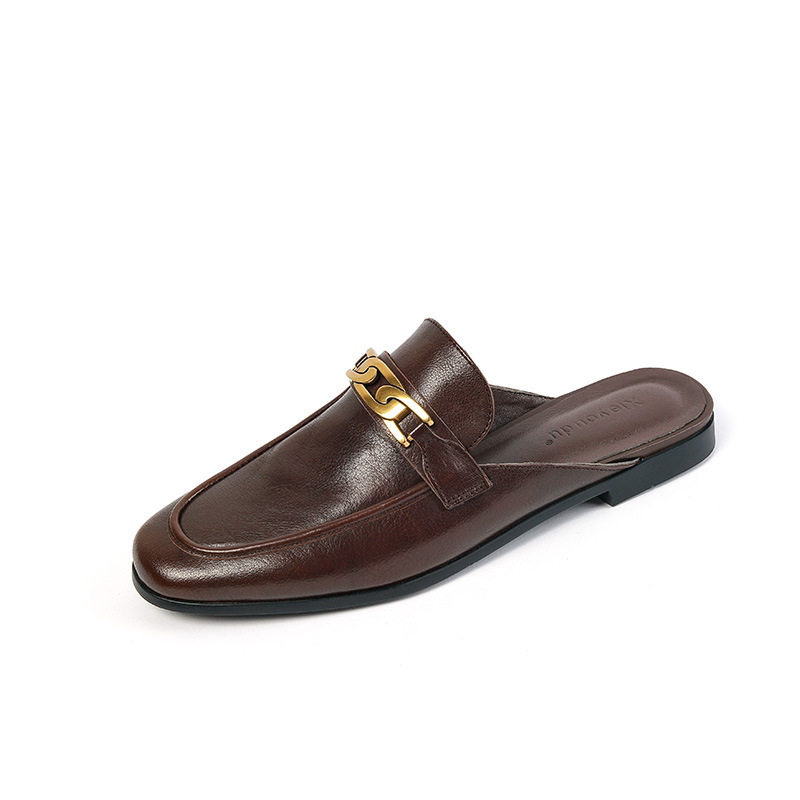 Кожаные летние ретро коричневые тапочки, 2022, из натуральной кожи