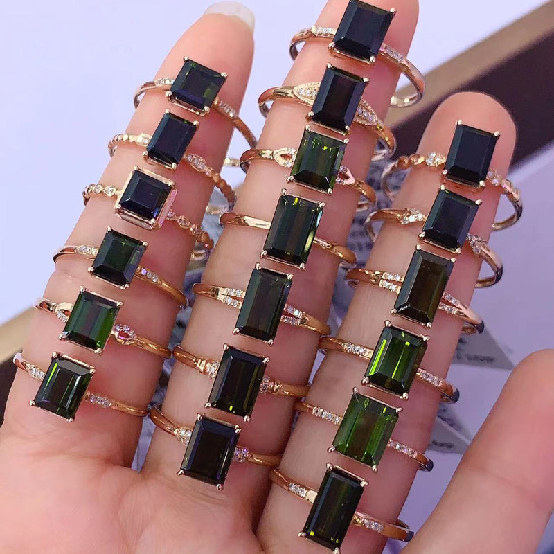 Натуральная инкрустация камня, турмалиновое квадратное кольцо изумруд, бриллиантовое ювелирное украшение, золото 750 пробы, с драгоценным камнем