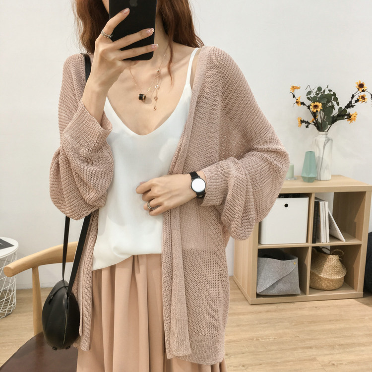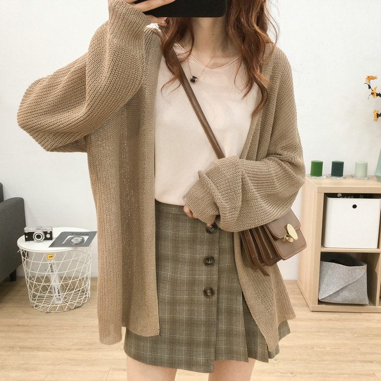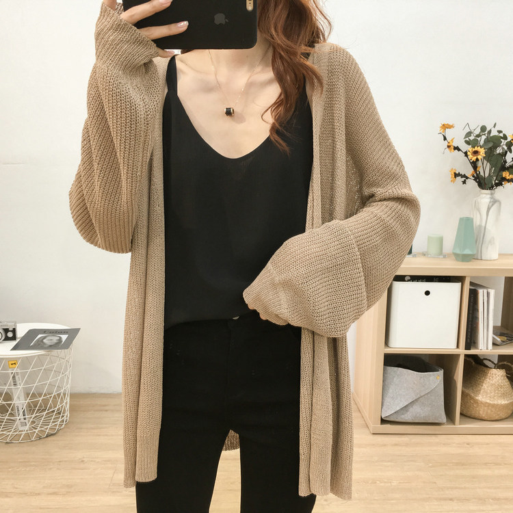 Хаки трикотажный кардиган, накидка, летнее платье-комбинация, защита от солнца, оверсайз