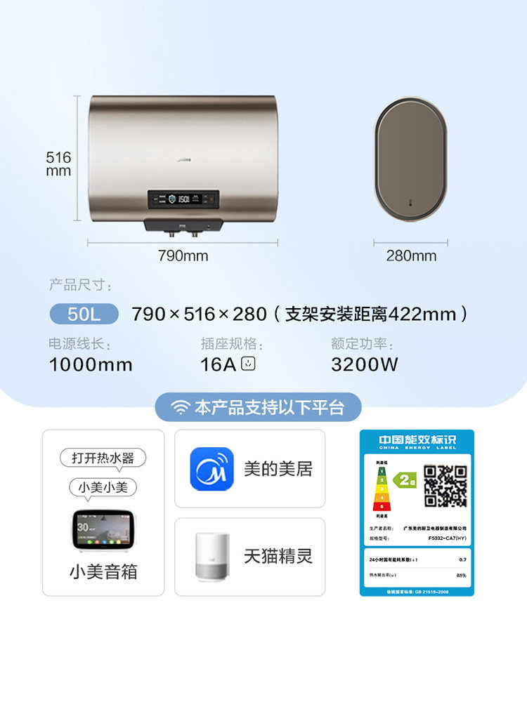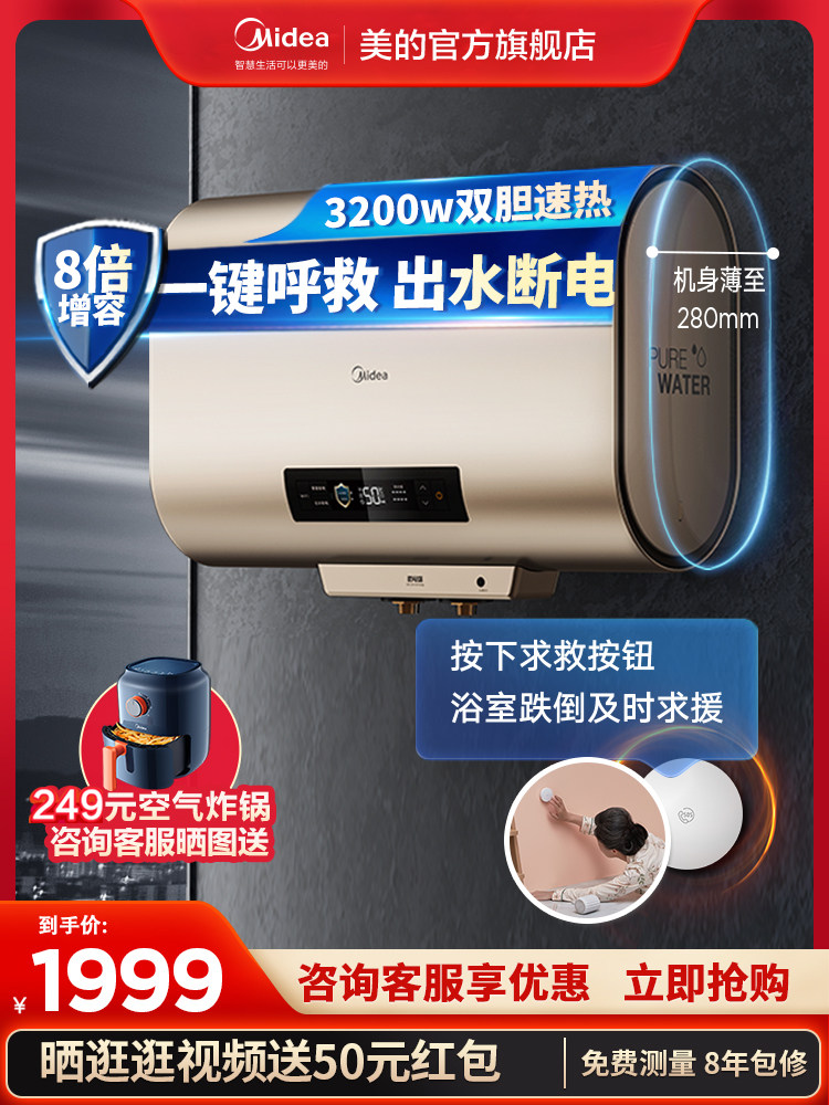 Midea Meiyu CA7 Ультра -тонкие электрические водонагреватели быстрая домашняя плоская ствола Большая вместимость из воды, вода, электрическая двойная горячая вода желчи