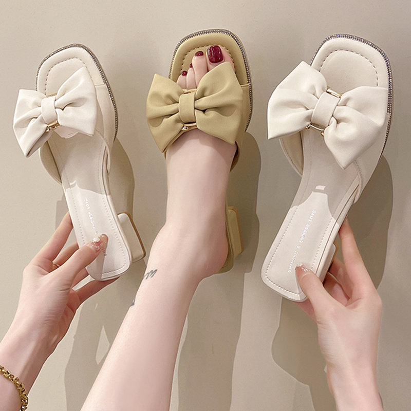 Тапочки, обувь с бантиком, модные слайдеры для выхода на улицу, коллекция 2022, изысканный стиль