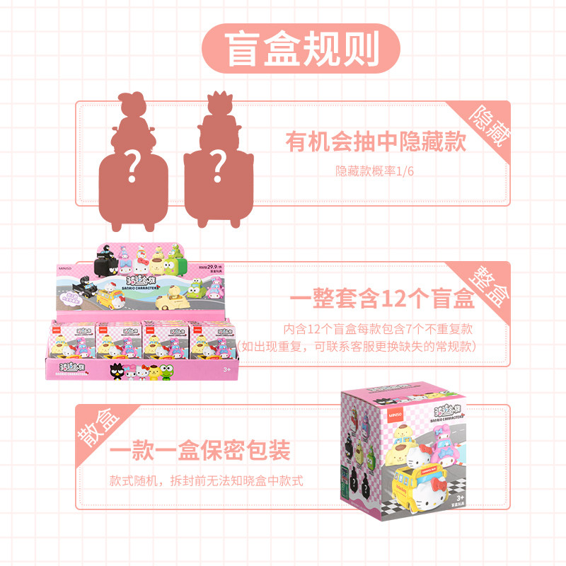 Miniso mingyin youpin sanrio ездит на семье счастливой слепой, слепой, милый кот Kaiti