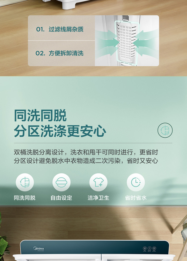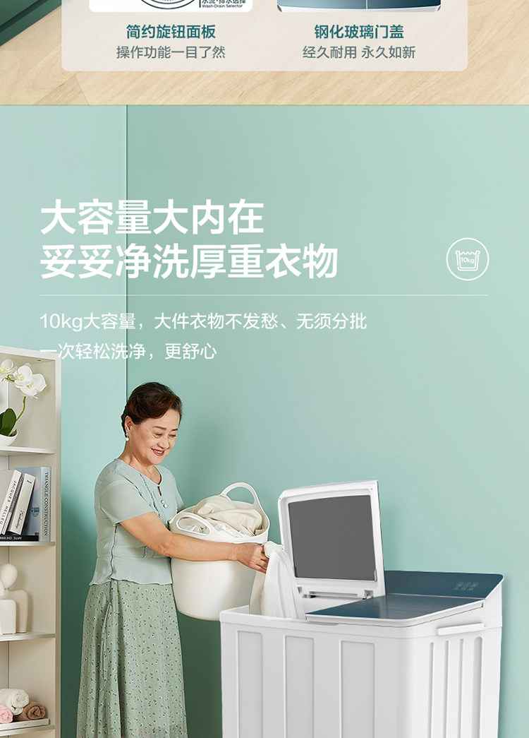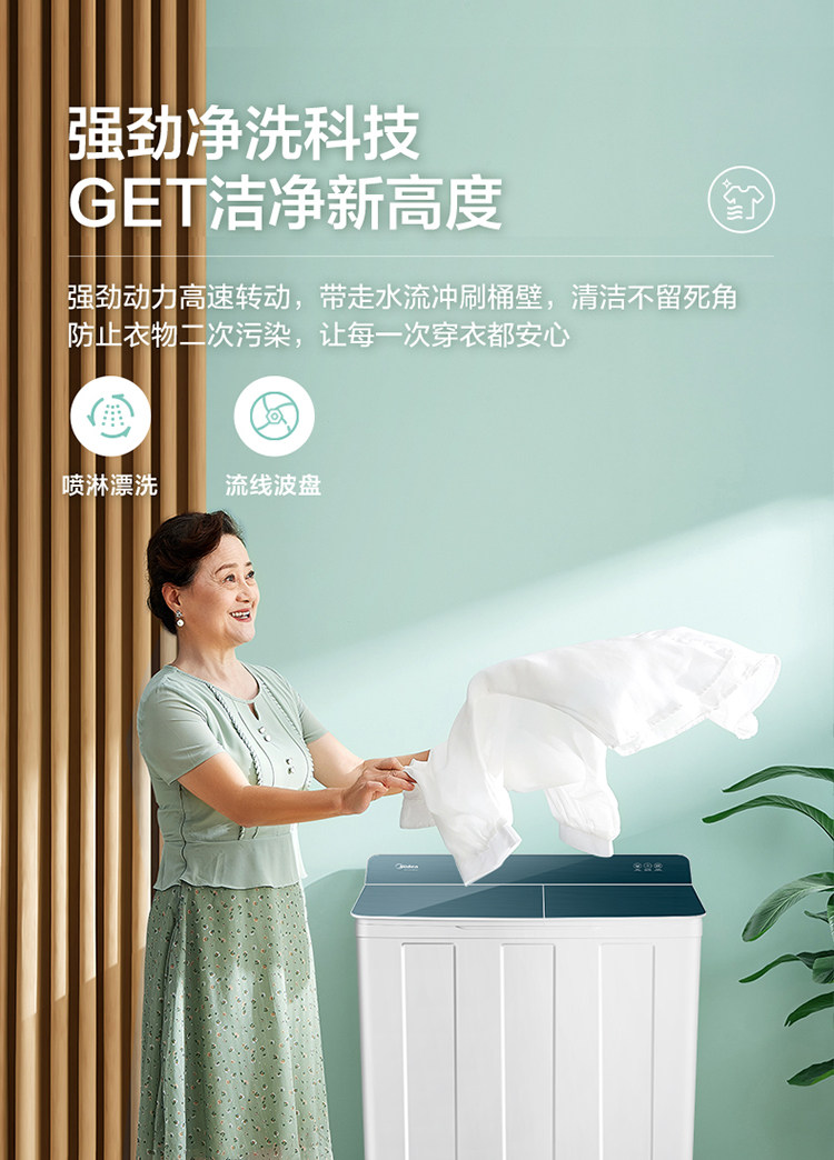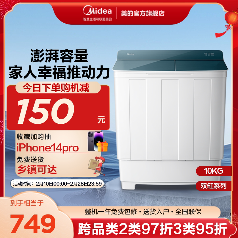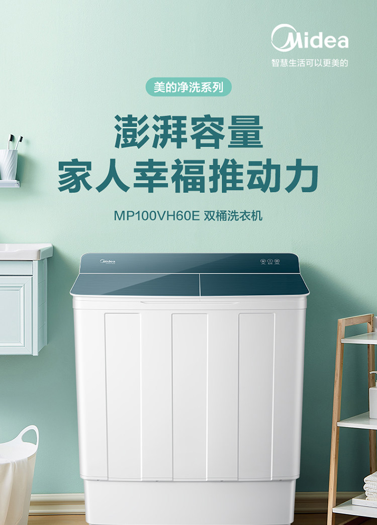 Midea 10 кг двойной бочкообразной колесной машины для дома большая -стволовая стиральная машина для ствола MP100VH60E