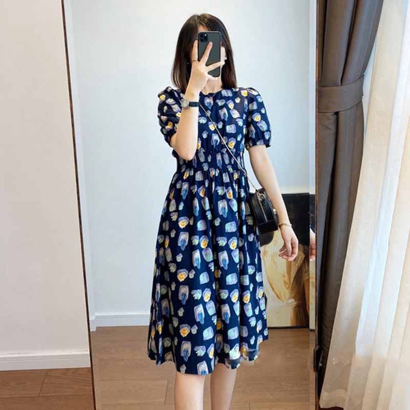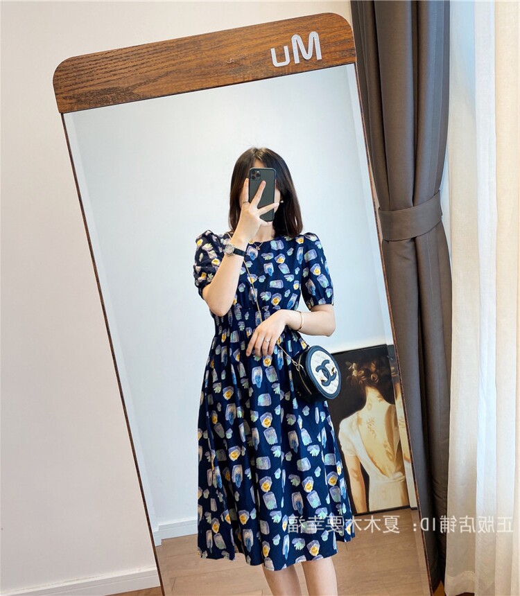 Кукла, синее платье, новая коллекция, А-силуэт, рукава фонарики, в цветочек