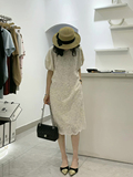 Летнее кружевное элегантное платье, оверсайз, рукава фонарики, французский стиль, по фигуре