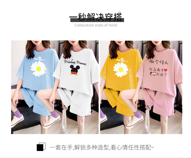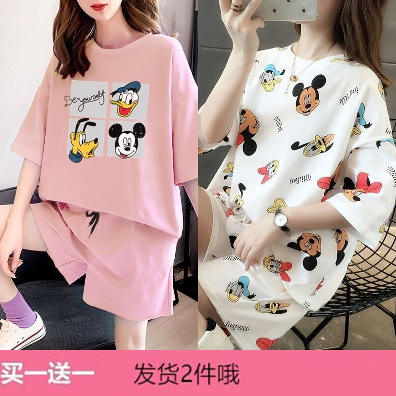 Летняя хлопковая пижама, брендовый милый тонкий комплект, домашняя одежда, короткий рукав, коллекция 2022, свободный крой