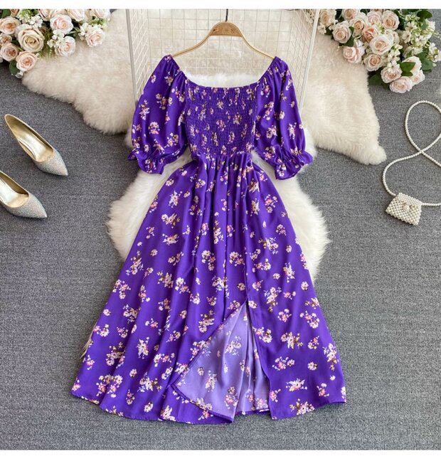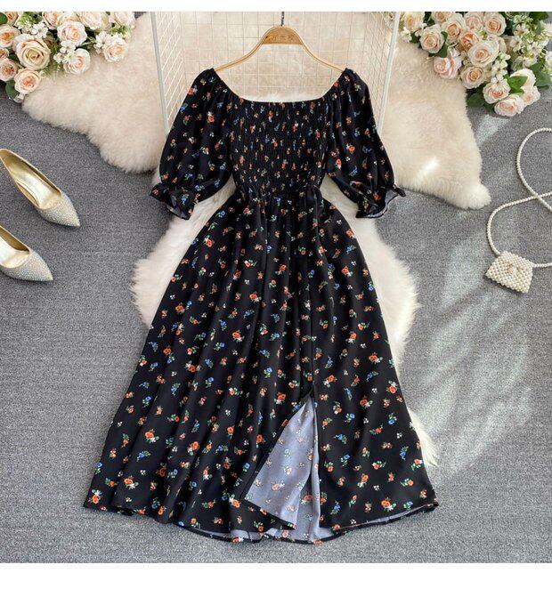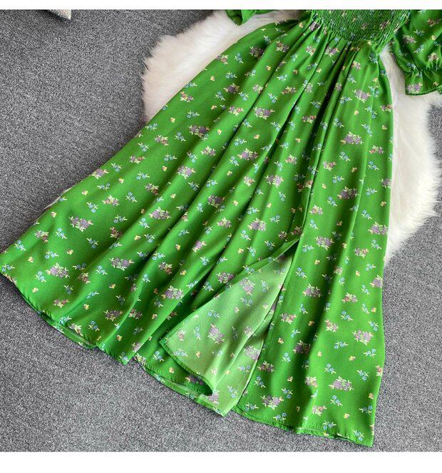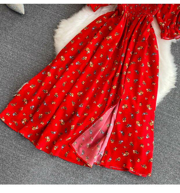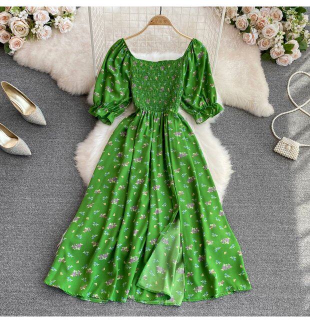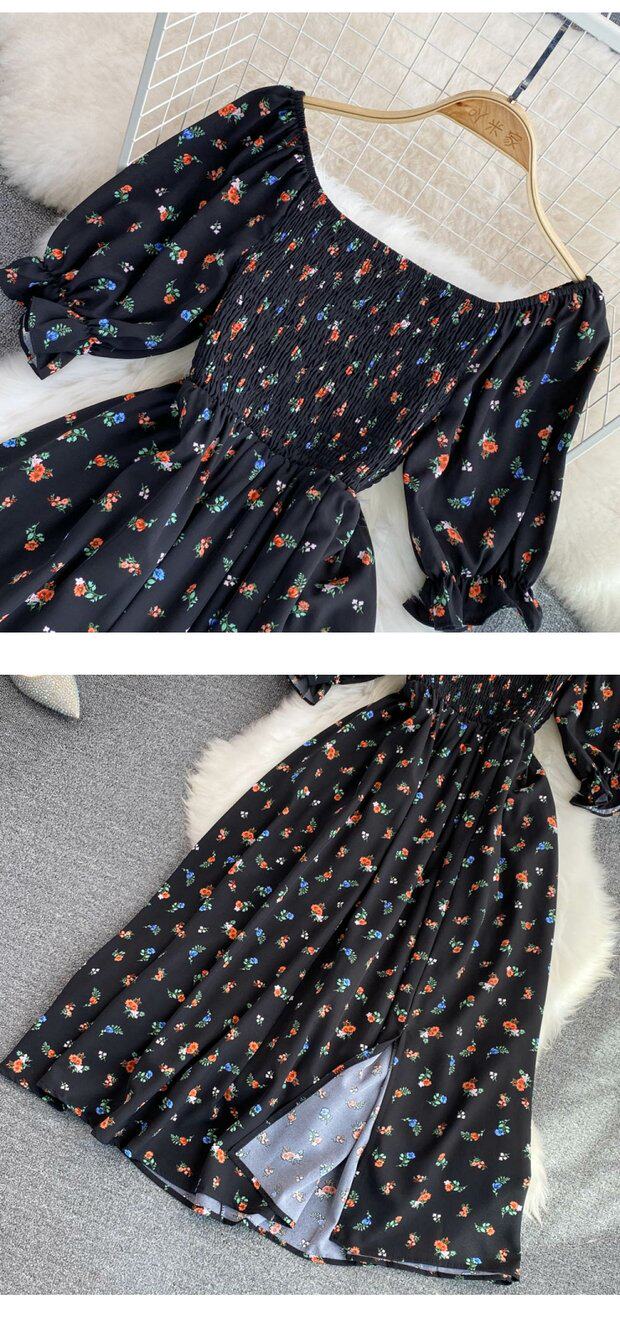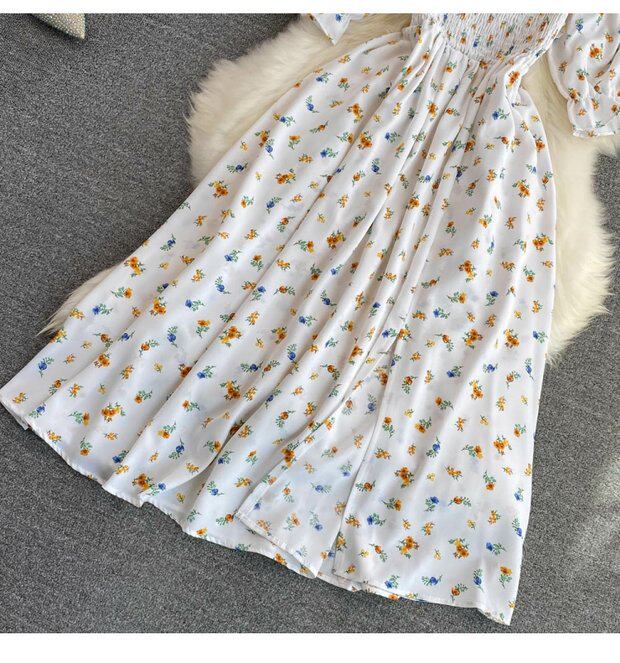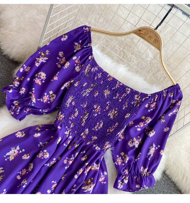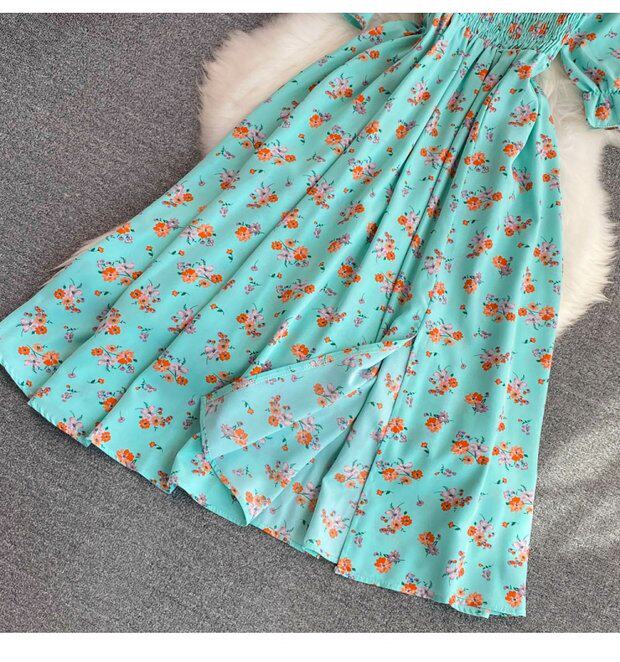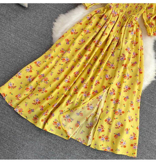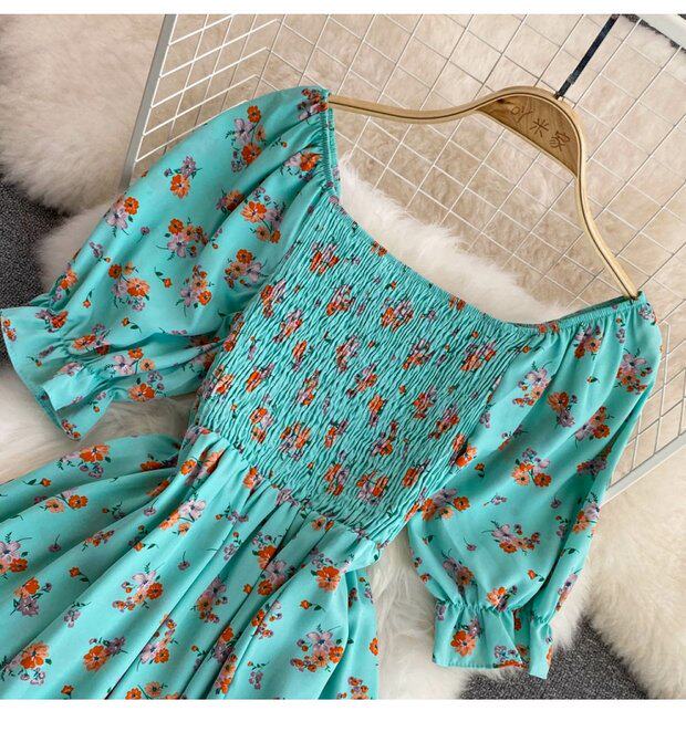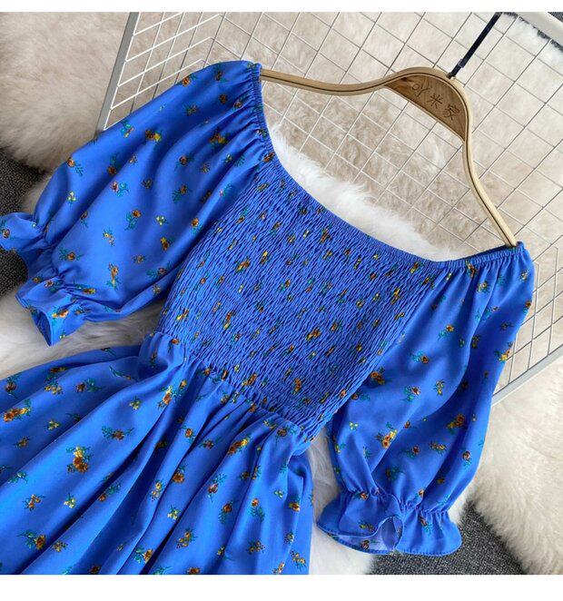 Летний милый приталенный корсет, платье, квадратный вырез, короткий рукав, А-силуэт