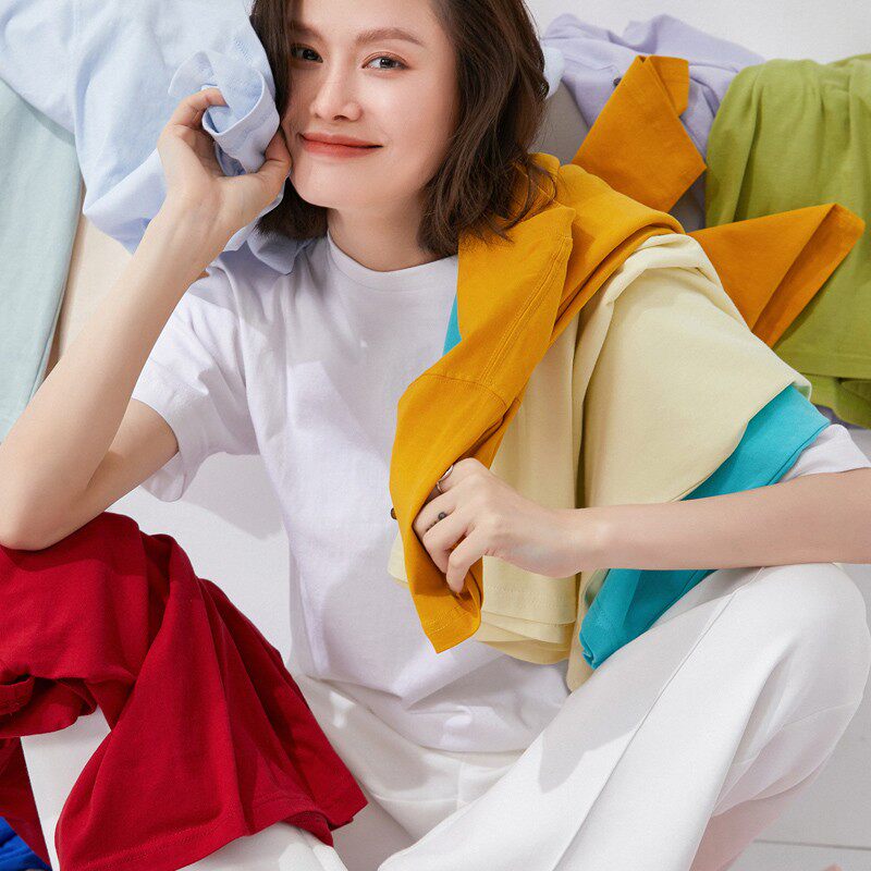 Хлопковая футболка с коротким рукавом с круглым воротником, свободный крой