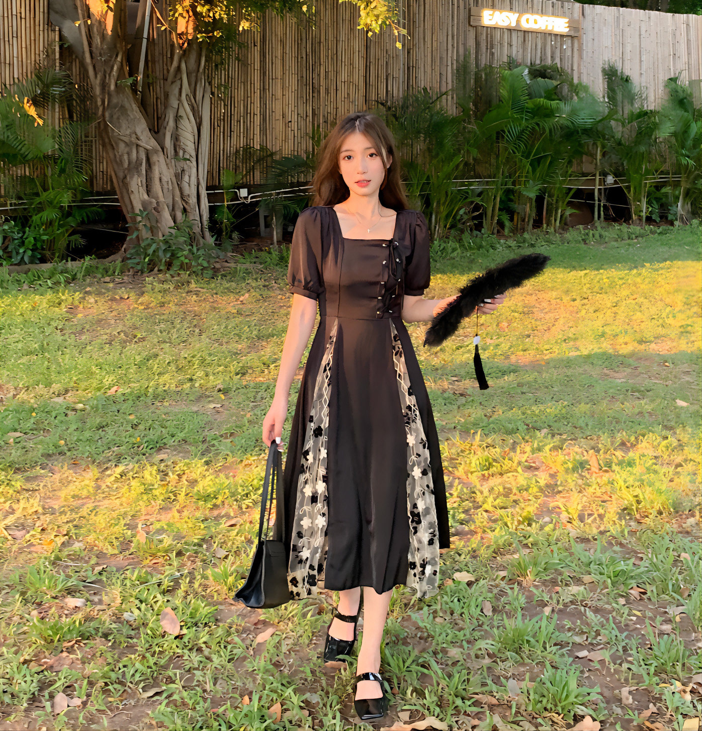 Летнее сексуальное платье, черная длинная юбка, большой размер, квадратный вырез, французский стиль, по фигуре