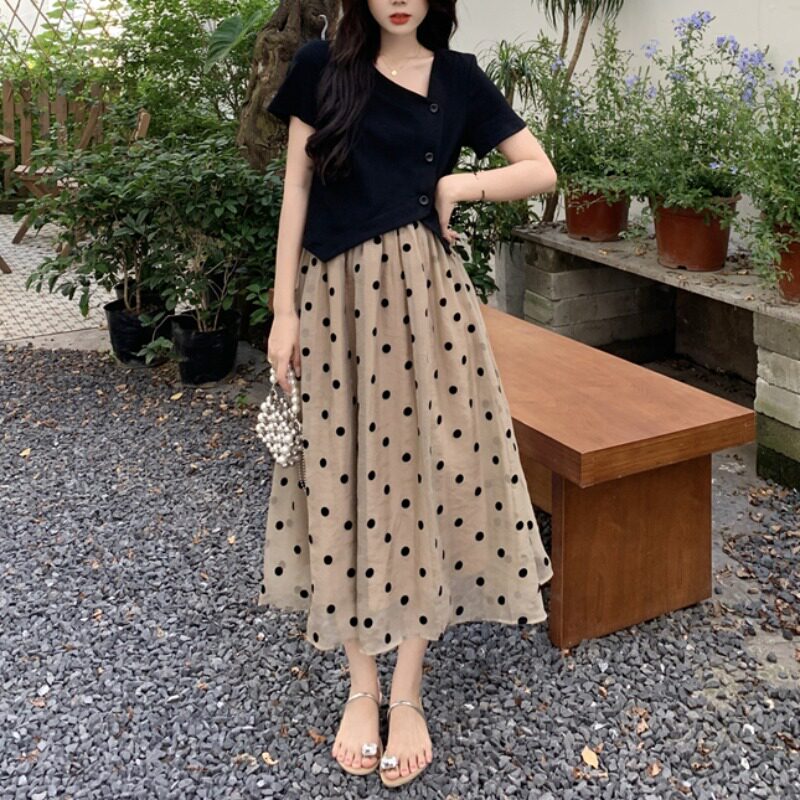 | Цвет: | Черный топ, Волновая точка юбка |